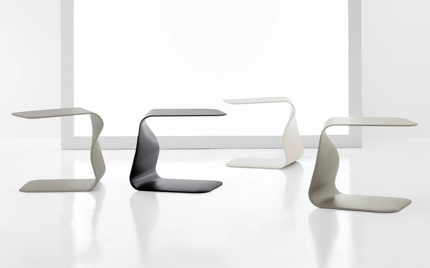 Като трансформация на извита и добре балансирана форма в елегантен структурен елемент, линиите на страничната маса DUFFY се развиват в пространството с лекота и графична стойност, подчертано от избора на цвят в четири фини и изискани нюанса. Практична и универсална, благодарение на чистата си естетика и динамичните взаимоотношения между плътно и празно пространство, както и малките си размери, DUFFY е холна масичка, която лесно се вписва в среди с различни стилистики.