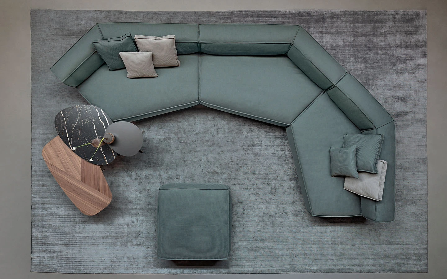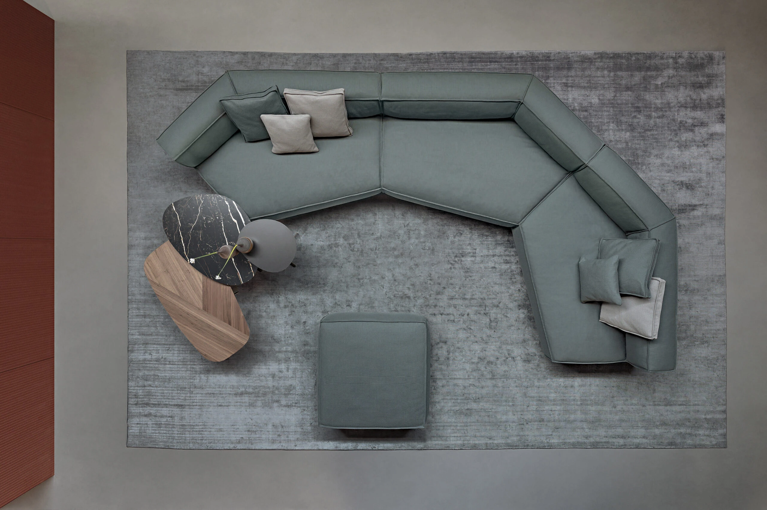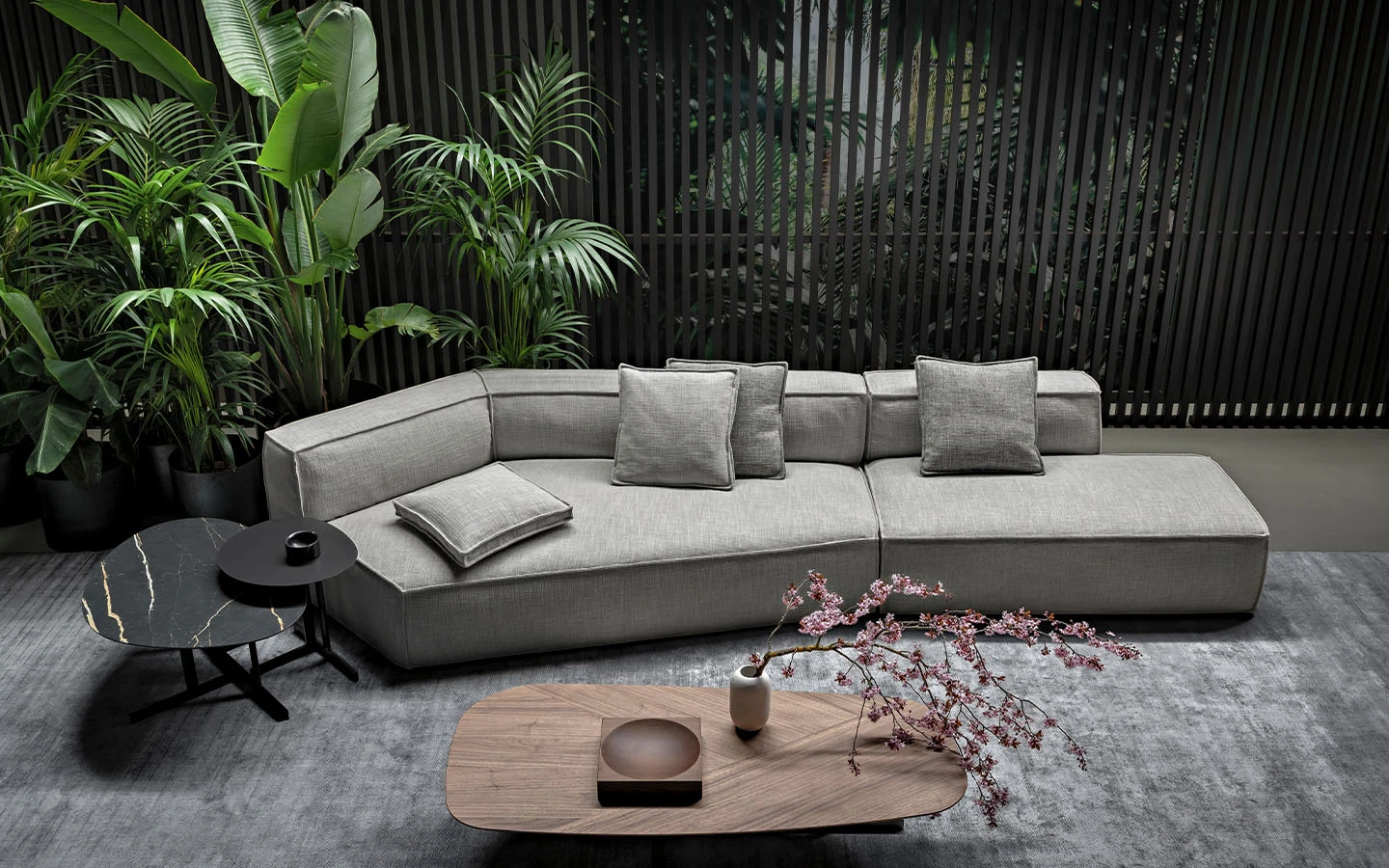За да създаде тези странични маси KUMO, архитектът Mauro Lipparini се фокусира върху минималистичния дизайн и съчетава смелата геометрична форма на металната опора с извитите контури на плотовете, които се предлагат в различни покрития, създавайки формален контраст, изразен с максимална лекота.