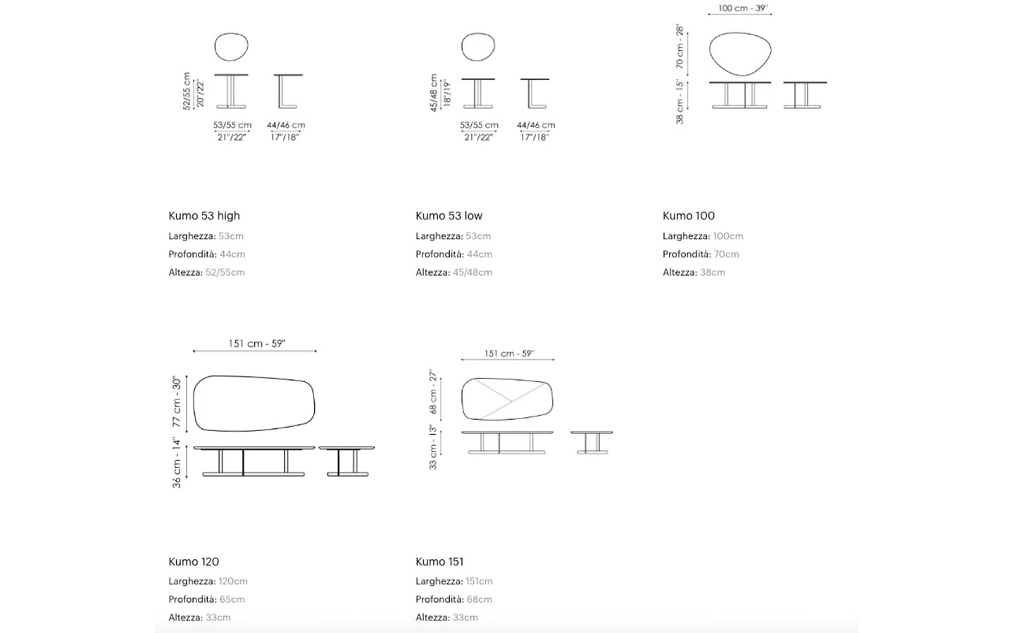 KUMO е италианска ниска маса от колекцията на италианския производител Bonaldo. Основата на масата е изработена от метал – голямо разнообразие от финиши по избор на клиента. Плотът на масата може да бъде от метал или естествен фурнир – финиши по избор на клиента. Цената на масата се формира на база на избора на размер, вид плот и финиш на основата.