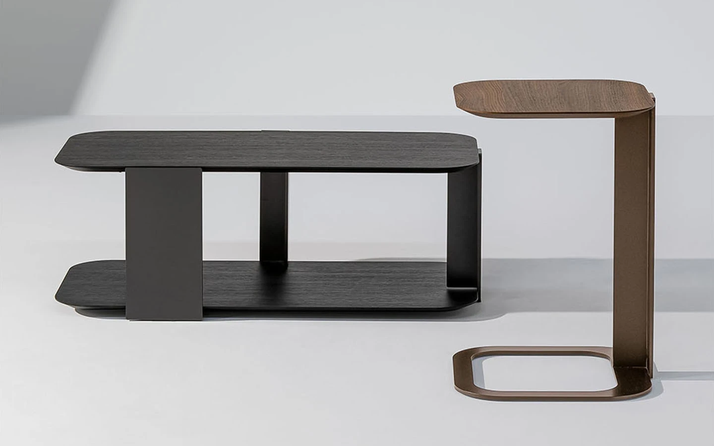 Страничната маса от колекцията PADDLE се характеризира с линейнност на своите изчистени форми.