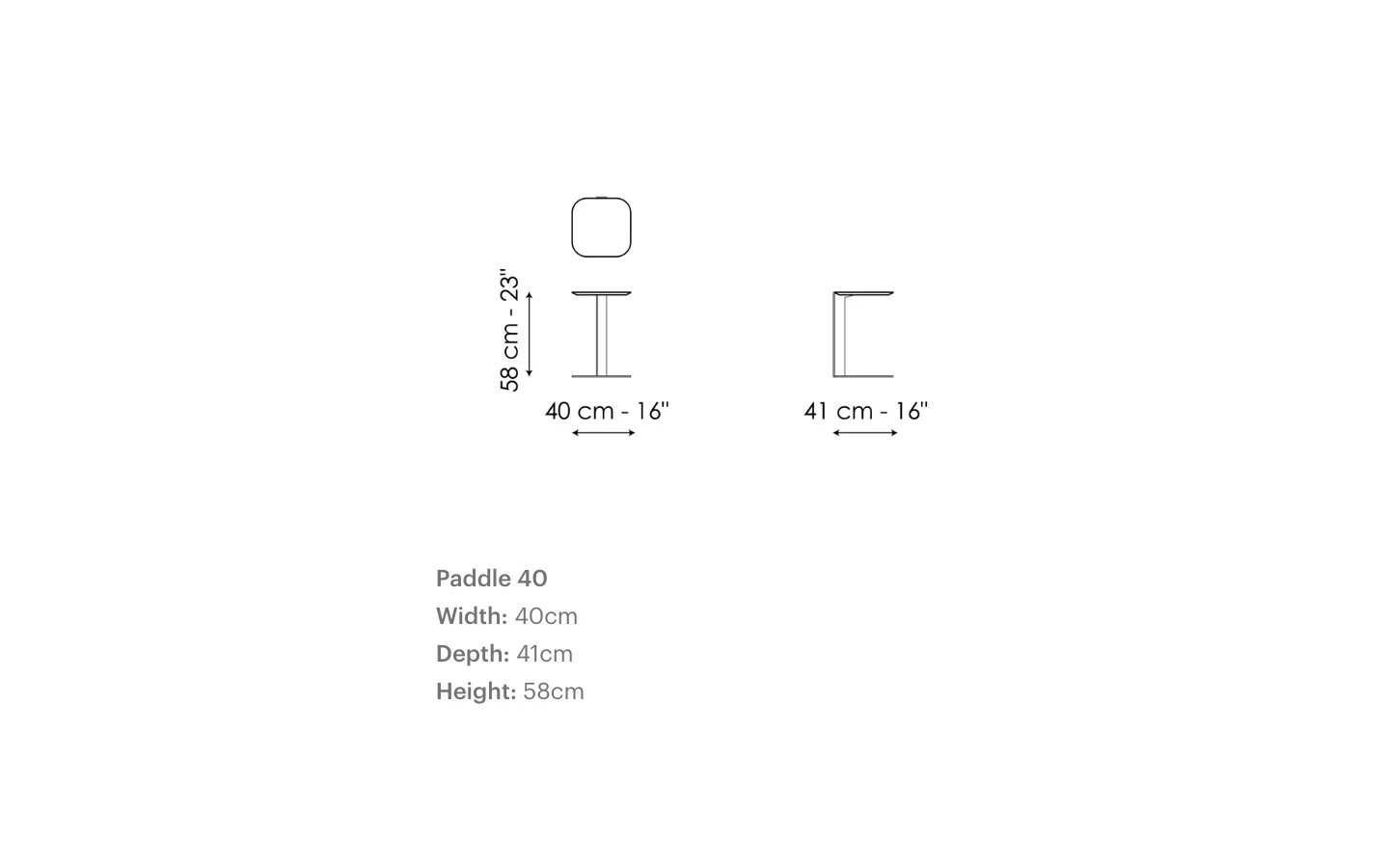 PADDLE е италианска странична маса от колекцията на италианския производител Bonaldo. Структурата на масата е изработена от метал – финиш Bronze или Lead, по избор на клиента. Плотът на масата е от естествен фурнир – орех Canaletto или Coal oak, по избор на клиента.
