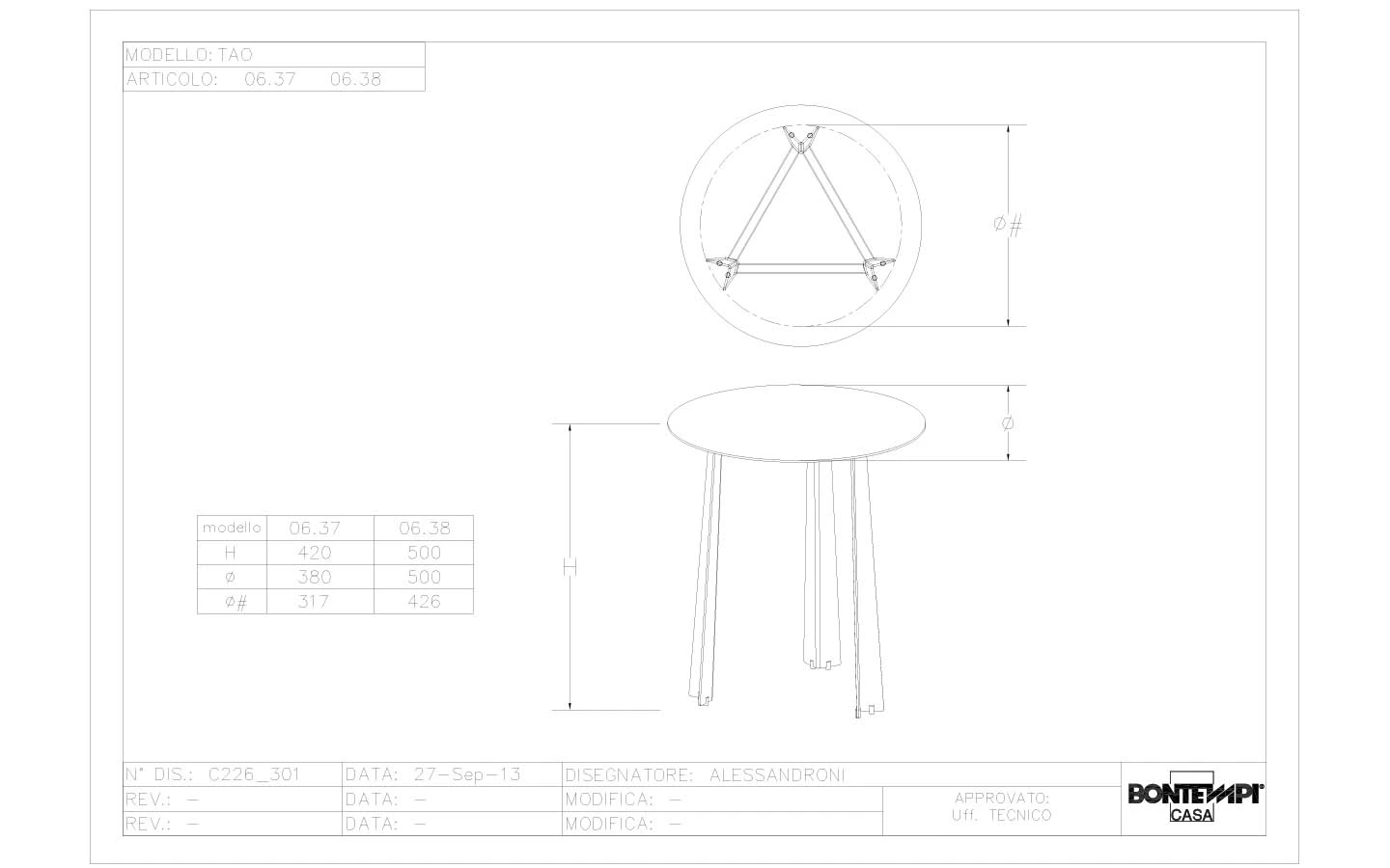 TAO е италианска странична маса от колекцията на италианския производител Bontempi Casa. Масата е изработена изцяло от метал – финиш по избор на клиента. Цената на масата се формира на база избора на размер и финиш на материала.