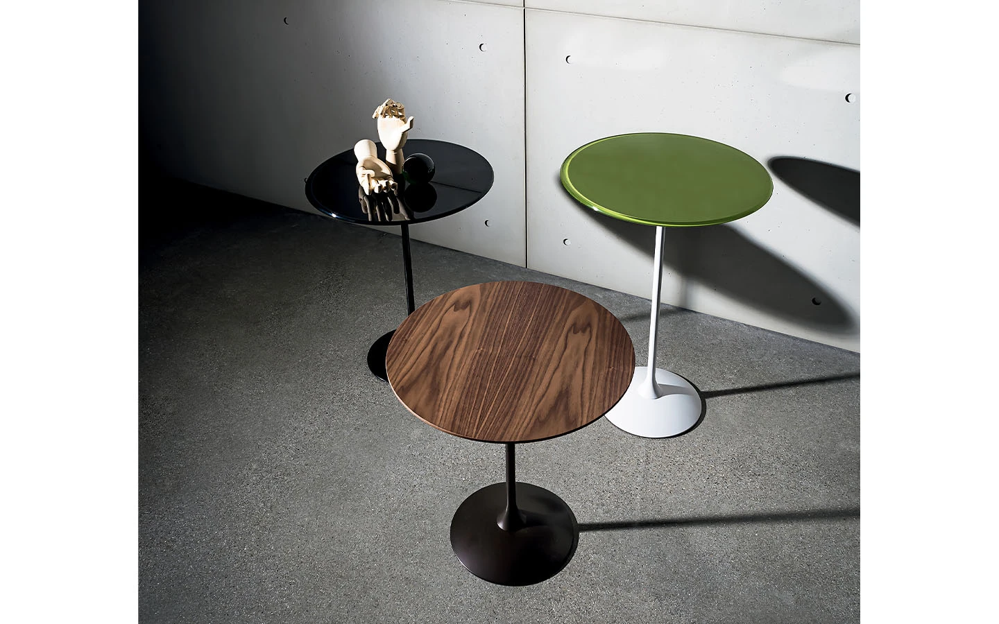 TULIP е проектирана да предлага полезна практичност в зона за отдих, добавяйки стойност на цялото пространство със своя изискан дизайн. Изборът между различни материали и цветове за плота позволява различни интерпретации и оставя въображението свободно в оформлението на мебелите. Тази маса не само че е практична, но също така придава елегантност и стил на интериора.