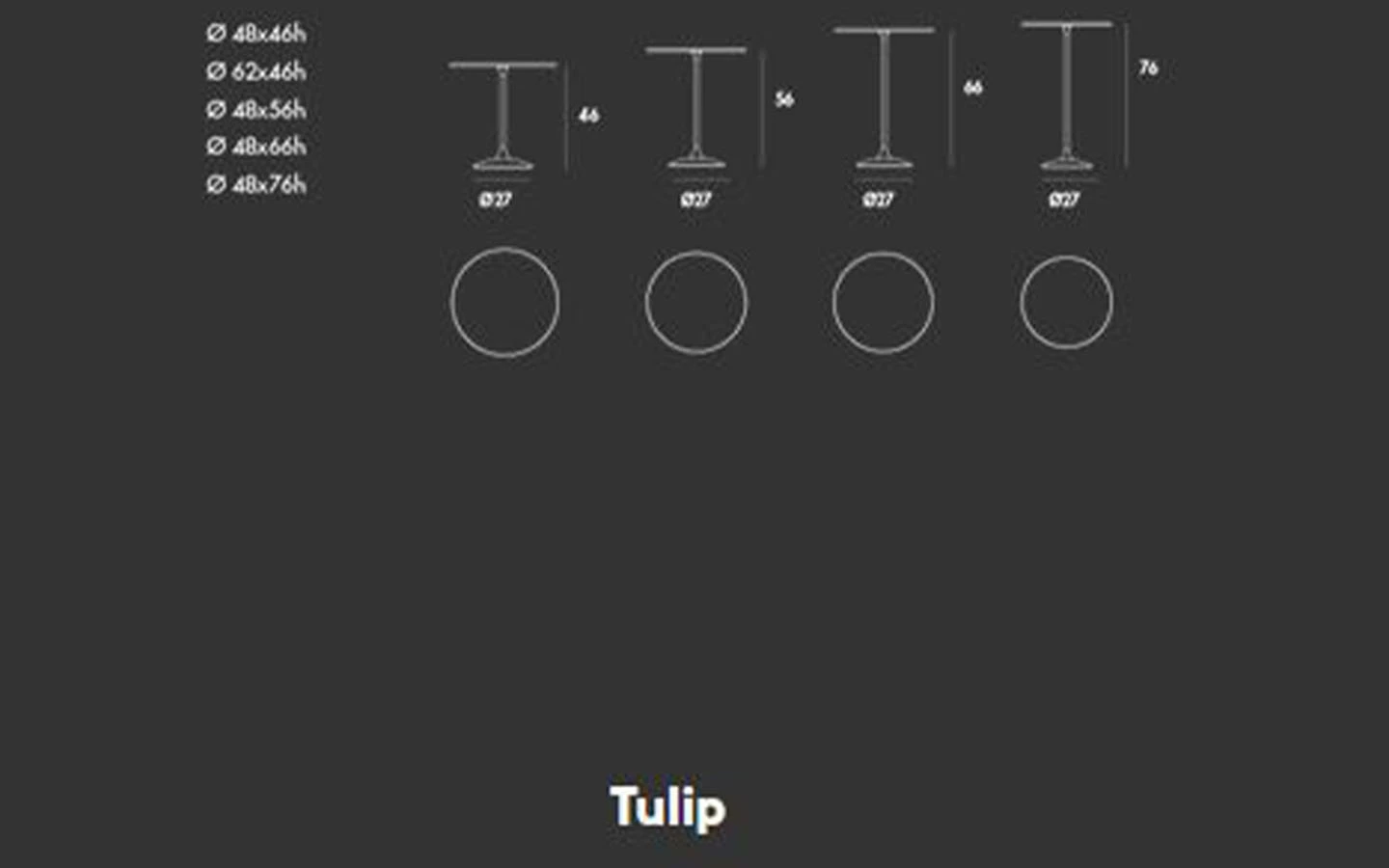 TULIP е италианска странична маса от колекцията на италианския производител Sovet. Основата на масата е изработена от метал – финиш по избор на клиента. Плотът на масата може да бъде от стъкло, сатенирано стъкло, стъкло Net, стъкло Materia/Liquid Glass, керамика или дърво – финиш по избор на клиента. Цената на масата се формира на база на избора на размер и вид на плота.