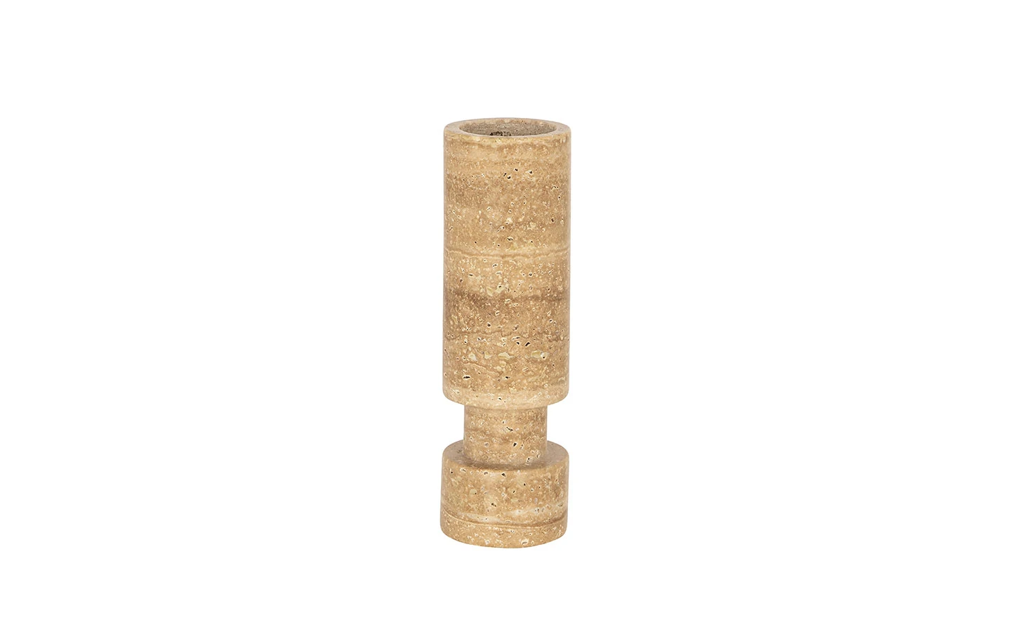 ALAINA от Richmond Interiors е изискан свещник, който съчетава естествена текстура с минималистичен дизайн. Изработен от висококачествен камък с визия, наподобяваща травертин, той придава усещане за топлина и органична естетика на всяко пространство. Неговата изчистена форма и естествен цвят го правят подходящ за интериори в стилове като съвременен минимализъм или класическа елегантност. ALAINA е част от колекцията Richmond Decoration и е идеален за тези, които търсят стилен и функционален декоративен елемент за своя дом или офис.