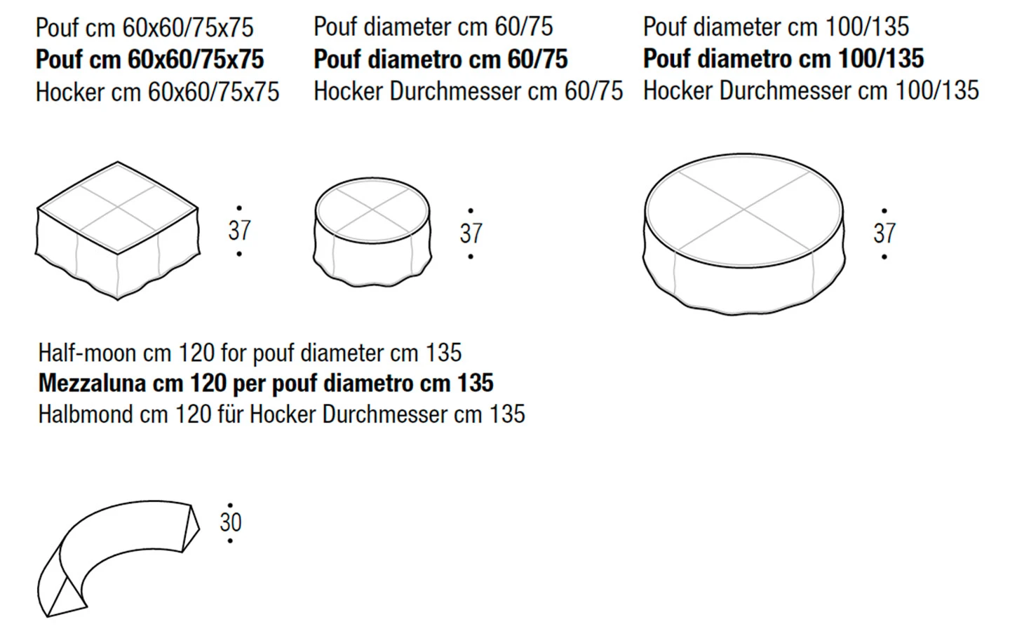 При колекция FOREVER SOFT се предлага също и опция за прибавяне на подвижен гръб върху табуретка с размер см. ⌀ 135, превръщайки я в удобна лежанка или кресло.