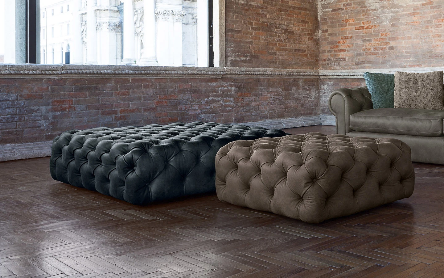 Колекцията CHARLES B на Flexteam включва както табуретка, така и пейка, които се отличават с елегантен дизайн и висококачествена изработка. Табуретката CHARLES B е нисък, удобен пуф, който обикновено се поставя пред диван или кресло. Характерен е с традиционната капитоне техника — ромбоидни форми с копчета, които създават изтънчен, класически вид. Табуретката е изцяло ръчно изработена от майстори, което й придава луксозен и неподвластен на времето вид​.