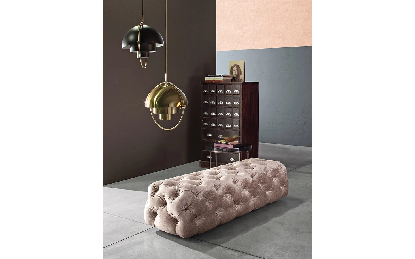 Пейка CHARLES B е с правоъгълна форма, която споделя същия капитоне дизайн и е предназначена да добави стил и комфорт във всяко пространство. Пейката е подходяща за използване както в дневната, така и в спалнята​.
