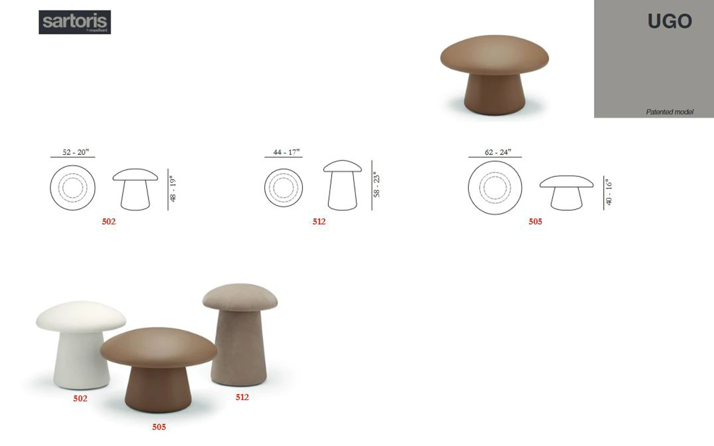UGO е италианска табуретка на италианския производител Max Divani. Табуретката може да бъде тапицирана в дамаска, естествена кожа или еко кожа – материал и цвят по избор. Цената се определя спрямо избора на тапицерия и размер.