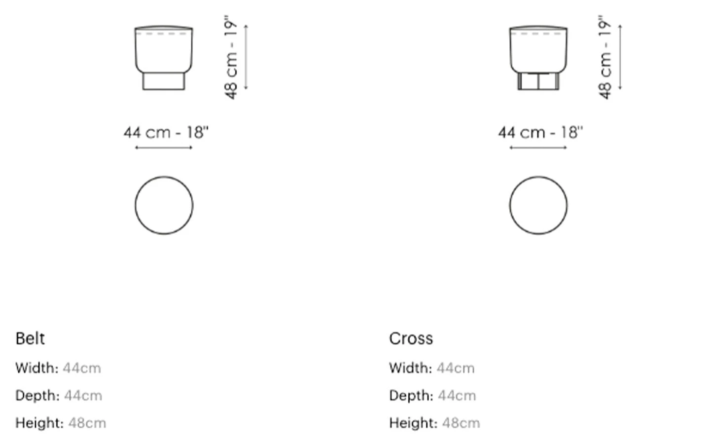 BELT & CROSS табуретките се различават по основите си, които придават на всяка от тях своя отличителен характер: кръглата метална основа на BELT играе с концепцията за стабилност, докато кръстовидната дървена основа на CROSS е детайлът, който прави този аксесоар моментално разпознаваем. Въпреки че приликите им ги правят идеални за съчетаване заедно, техните различия и разнообразните възможности за комбиниране създават динамична, жива и постоянно променяща се среда.
