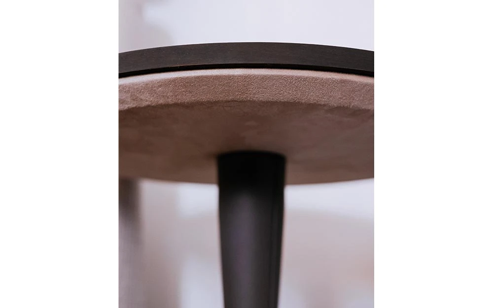 Страничната маса TEO е част от колекцията на италианския производител LUIGI VOLPI. Масичката е елегантен и изискан аксесоар за всеки интериор. Плотът е от естествен фурнир във финиш тъмен орех. Централният крак на масичката е тапициран в тъмнокафява естествена кожа. В основата присъстват метални детайли във финиш черен хром и естествен фурнир във финиш тъмен орех.
