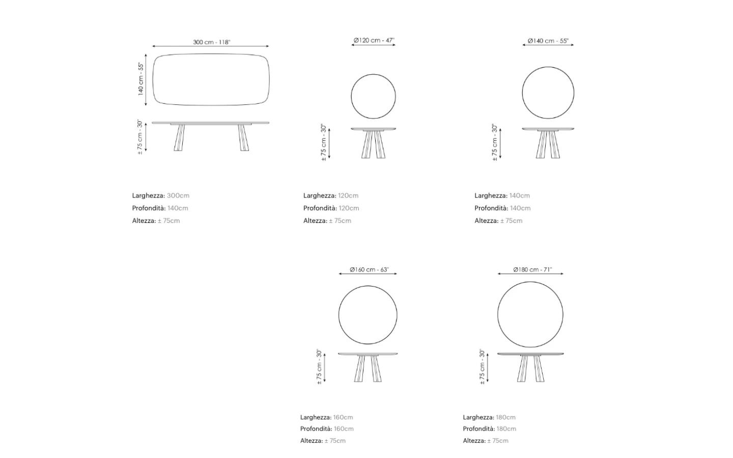 TORII е италианска трапезарна маса от колекцията на италианския производител Bonaldo. Основата на масата е изработена от метал – голямо разнообразие от финиши по избор на клиента. Плотът на масата може да бъде от естествен фурнир, масивно дърво, керамика или естествен мрамор – разнообразие от финиши по избор на клиента. Цената на масата се формира на база на избора на размер, вид плот и финиш на основата.
