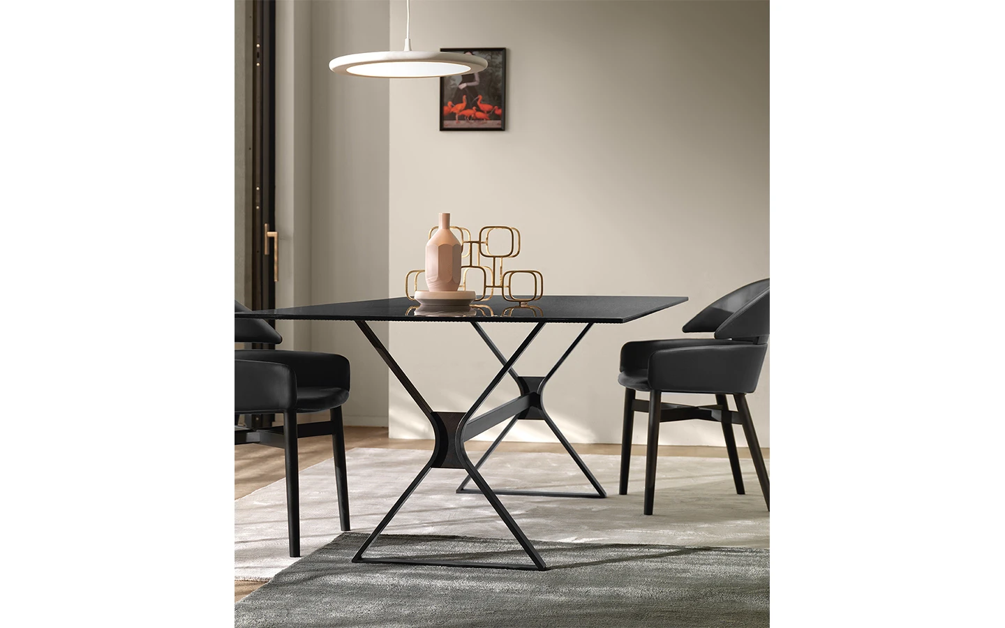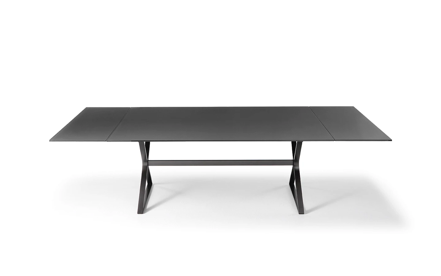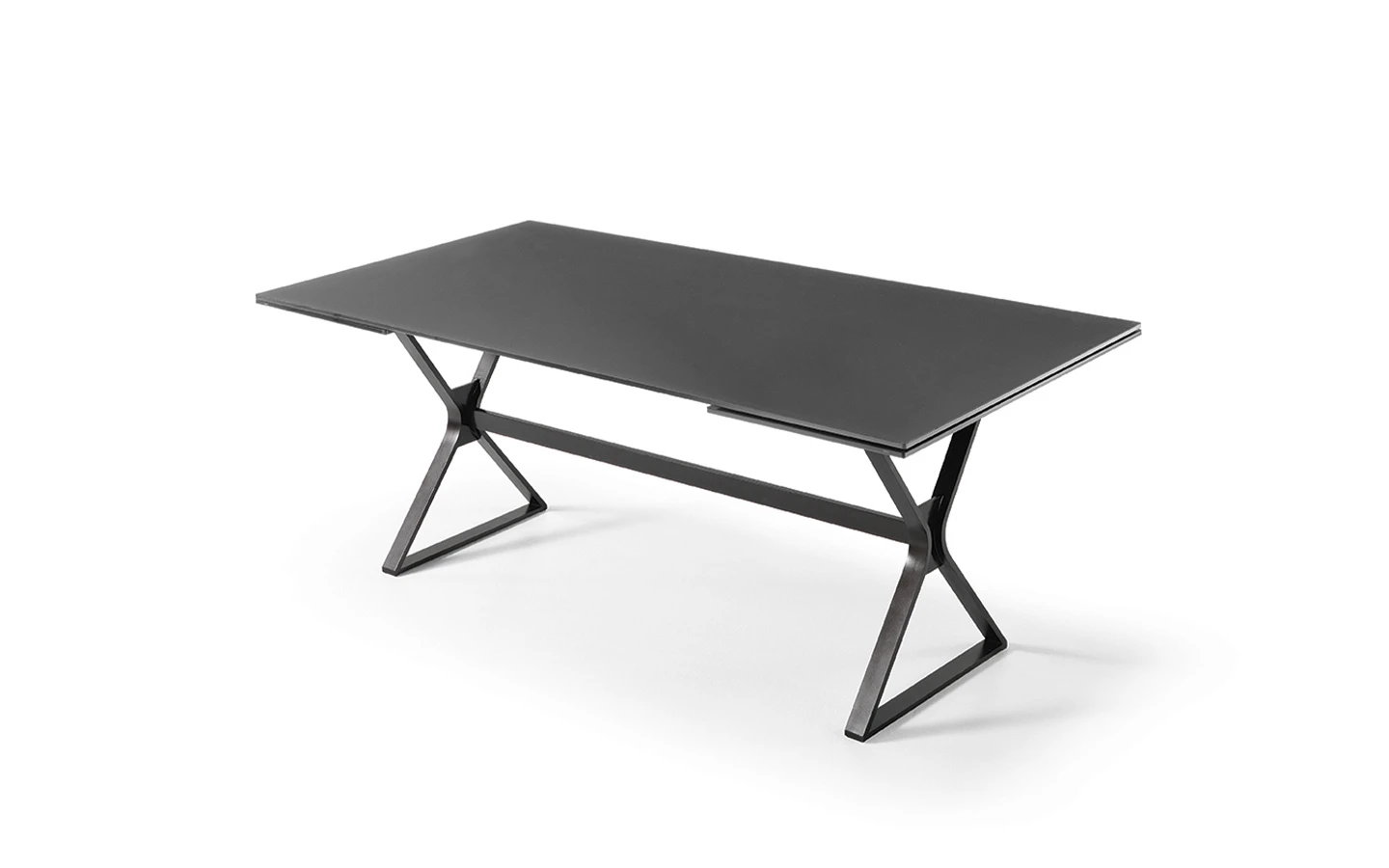 Посочената цена е за трапезарна маса с размери см. 200/100/75H., с метална основа финиш Lava Grey и плот от стъкло в цвят по избор.
