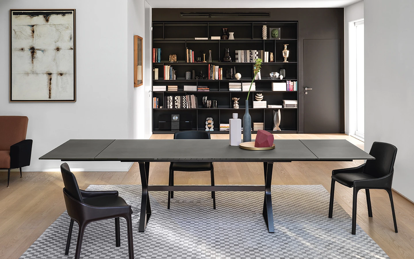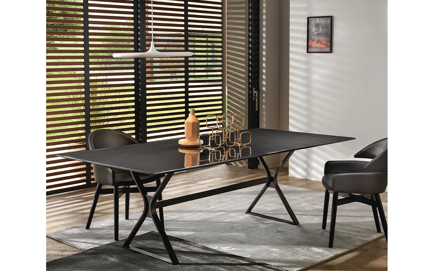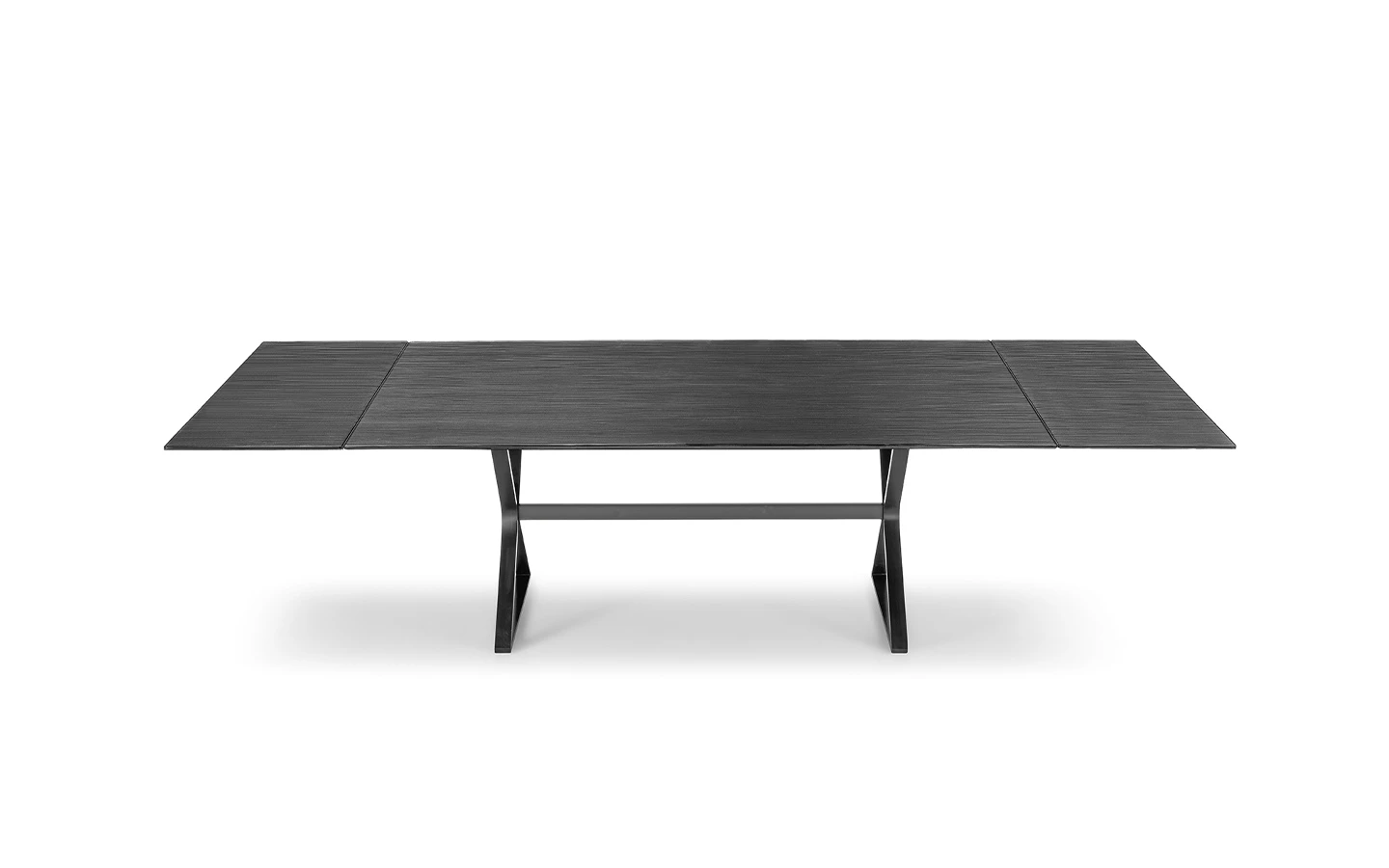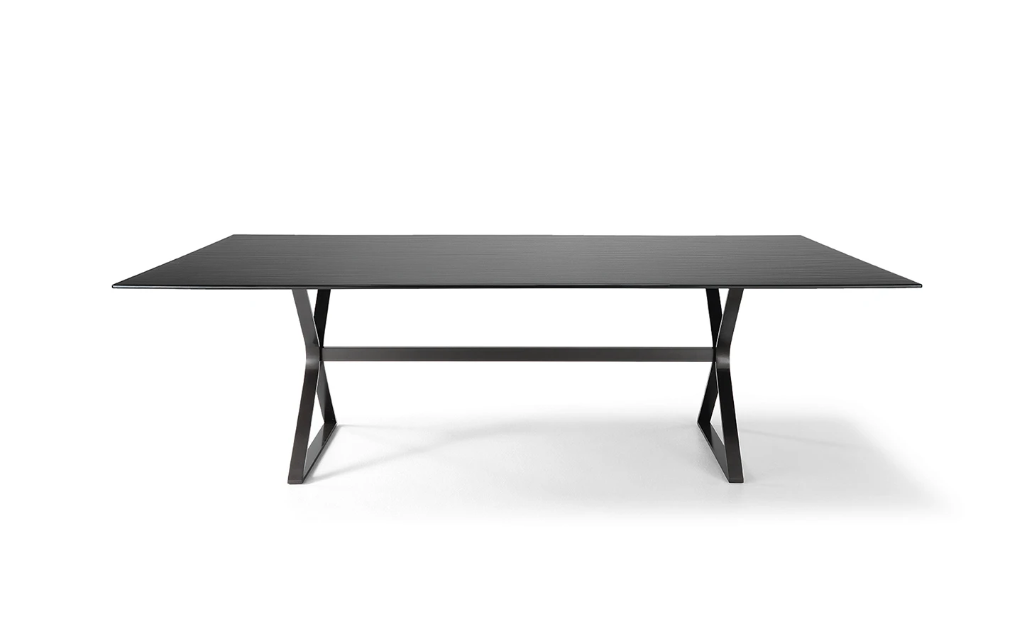 Посочената цена е за трапезарна маса с размери см. 200/100/75H., с метална основа финиш Lava Grey и плот от стъкло в цвят по избор.