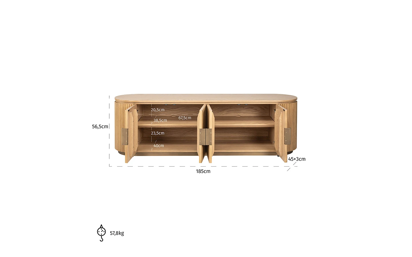 BELFORT е ТВ шкаф от колекцията на нидерландския производител Richmond Interiors. Шкафът е изработен от фурнировано дърво – финиш Natural Oak. Основата и детайлите са изработени от метал.