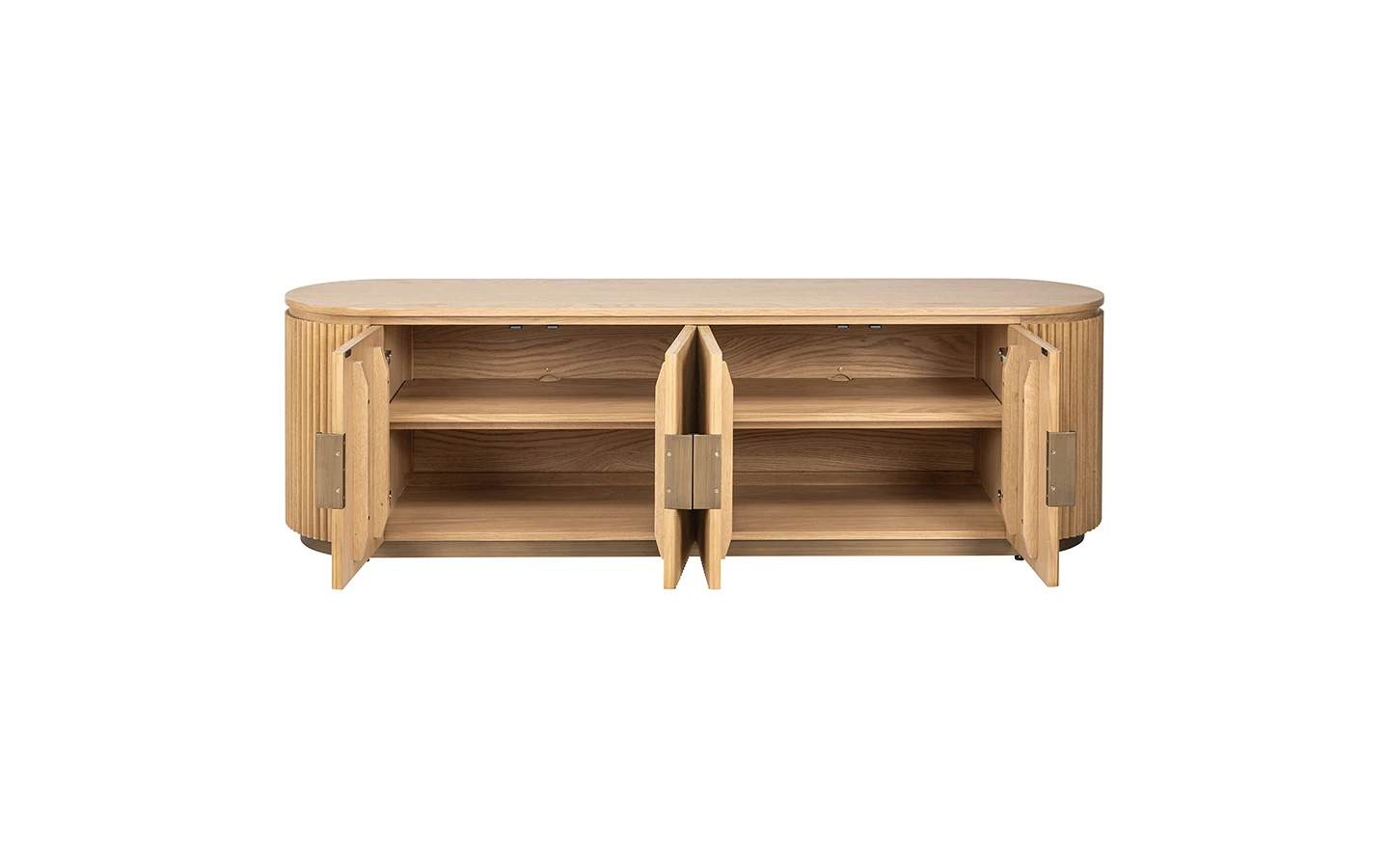 ТВ шкафът BELFORT с 4 врати от Richmond Interiors е елегантна и функционална мебел, съчетаваща модерен дизайн с висококачествени материали. Изработен от естествен дъбов фурнир, този шкаф придава топлина и стил на всяко помещение. Този шкаф е част от колекцията BELFORT и се отличава с изчистени линии и висококачествени материали, което го прави подходящ за различни интериорни стилове.