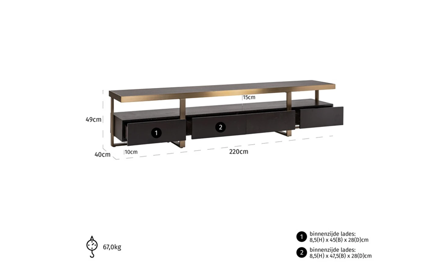 DIDDLEY е ТВ шкаф от колекцията на нидерландския производител Richmond Interiors. Шкафът е изработен от фурнировано дърво – финиш Charcoal. Структурата е изработена от метал.
