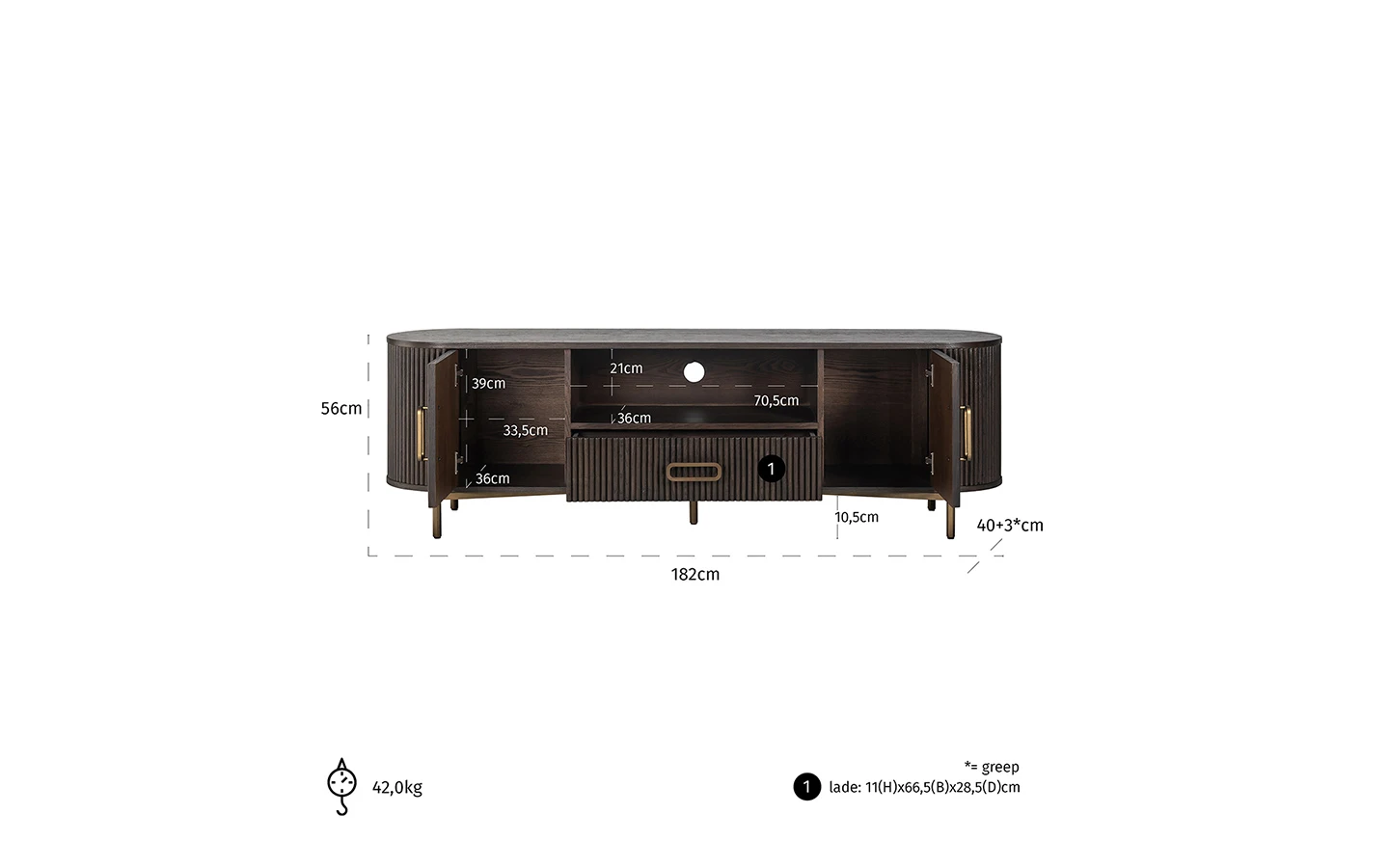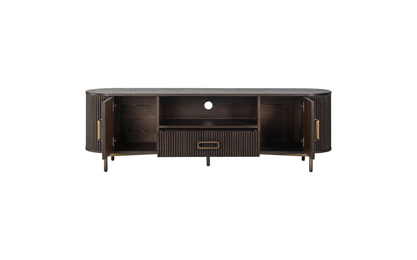 LUXOR е ТВ шкаф от колекцията на нидерландския производител Richmond Interiors. Шкафът е изработен от дъб – финиш Brown. Краката са изработени от метал.