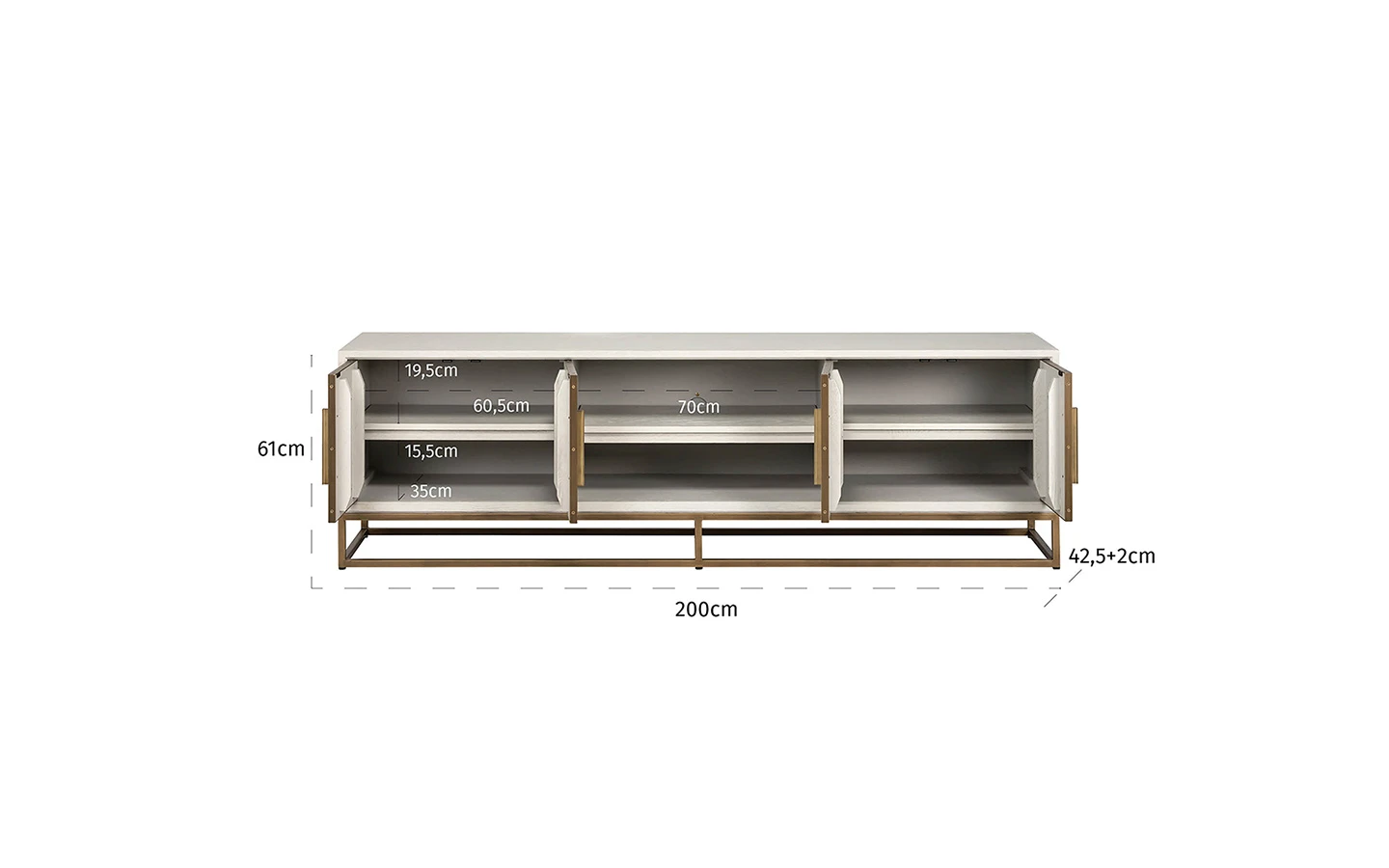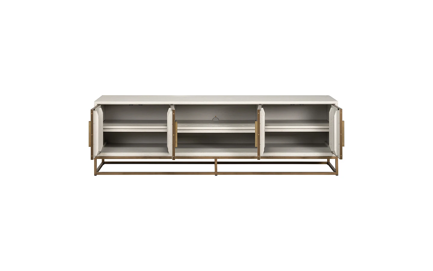 ТВ шкафът WHITEBONE с 4 врати в цвят Verona Grey от Richmond Interiors е елегантна и функционална мебел, съчетаваща модерен дизайн с висококачествени материали. Изработен от дъбов фурнир и метал, този шкаф предлага простор за съхранение и стилен акцент във вашия интериор. Този шкаф е част от колекцията WHITEBONE и се отличава с изчистени линии и висококачествени материали, което го прави подходящ за различни интериорни стилове.
