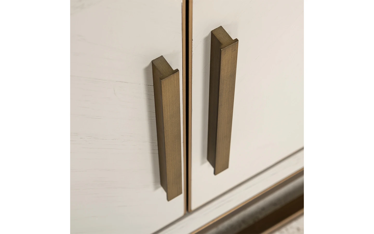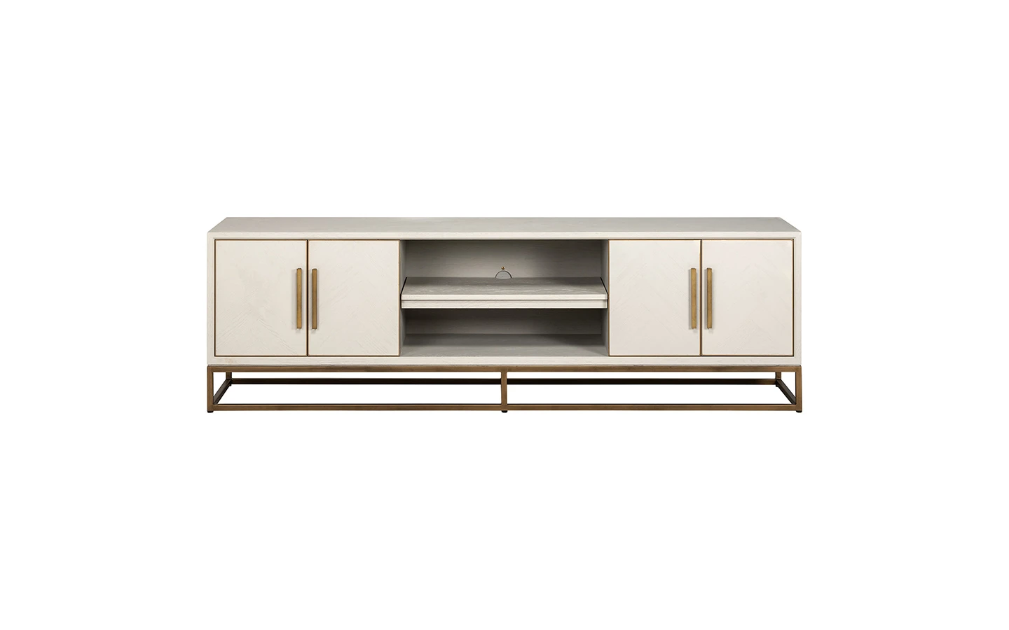 WHITEBONE е ТВ шкаф от колекцията на нидерландския производител Richmond Interiors. Шкафът е изработен от фурнировано дърво – финиш Verona Grey. Структурата и детайлите са изработени от метал – финиш Brushed Brass.