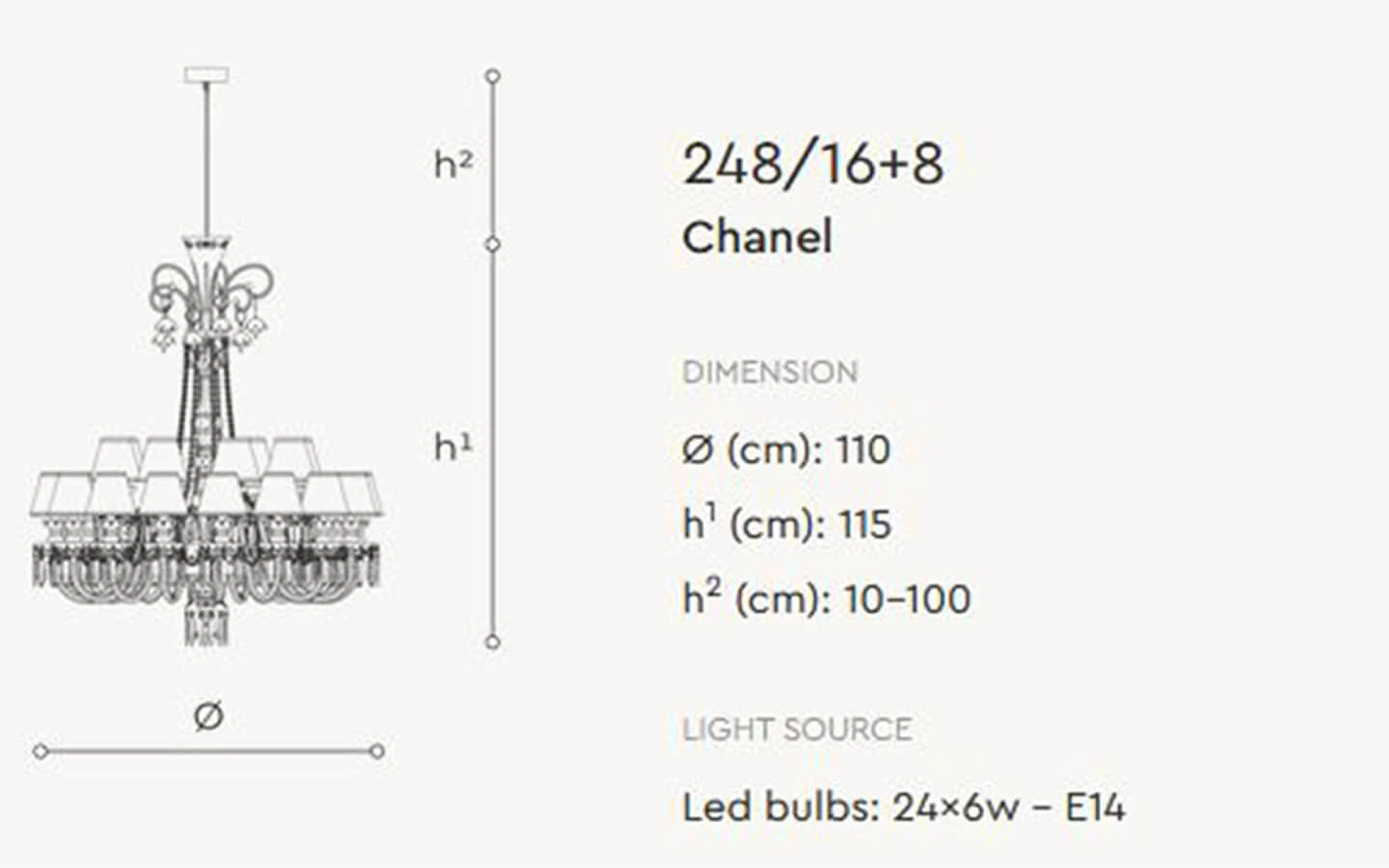 | Име на продукт | CHANEL 248/20+10+5 SUSPENSION LAMP |