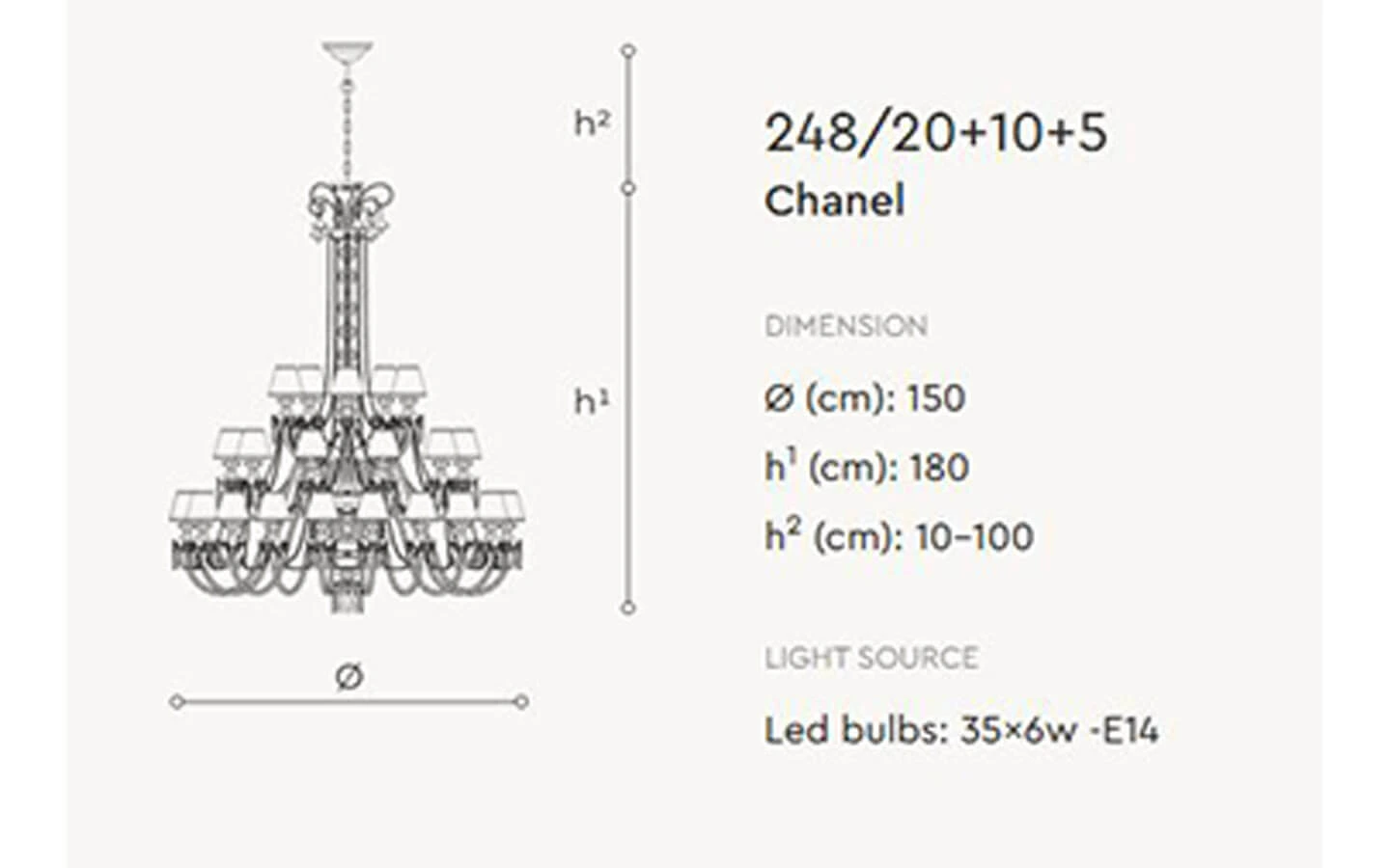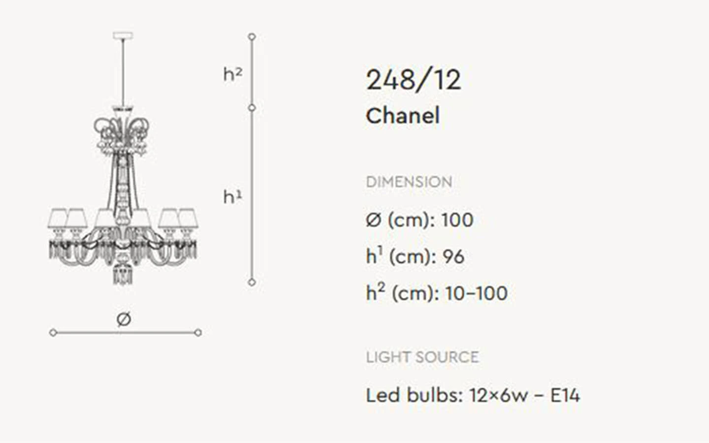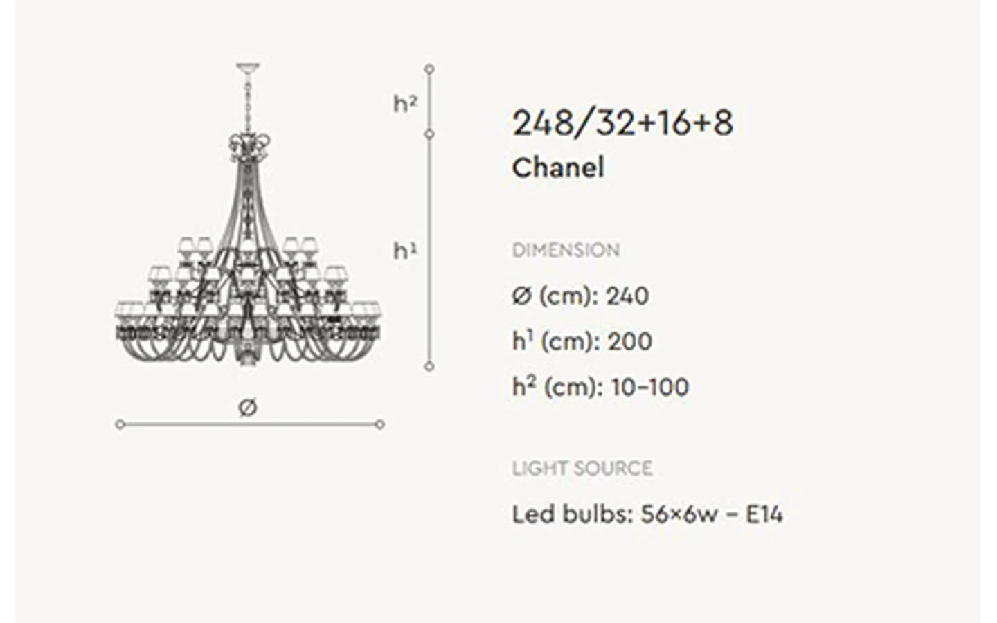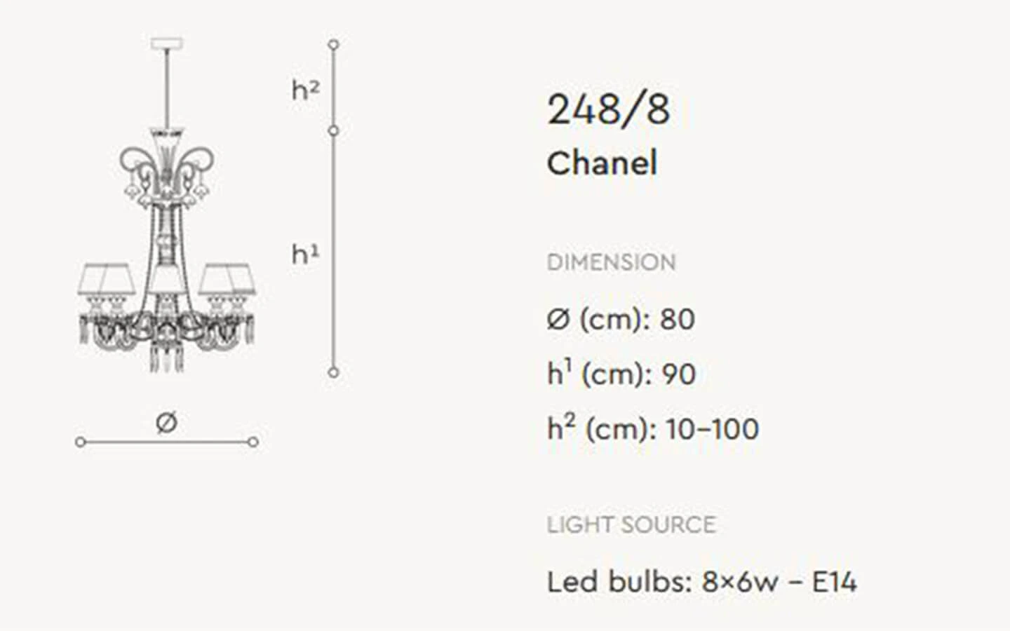 | Име на продукт | CHANEL 248/8 SUSPENSION LAMP |