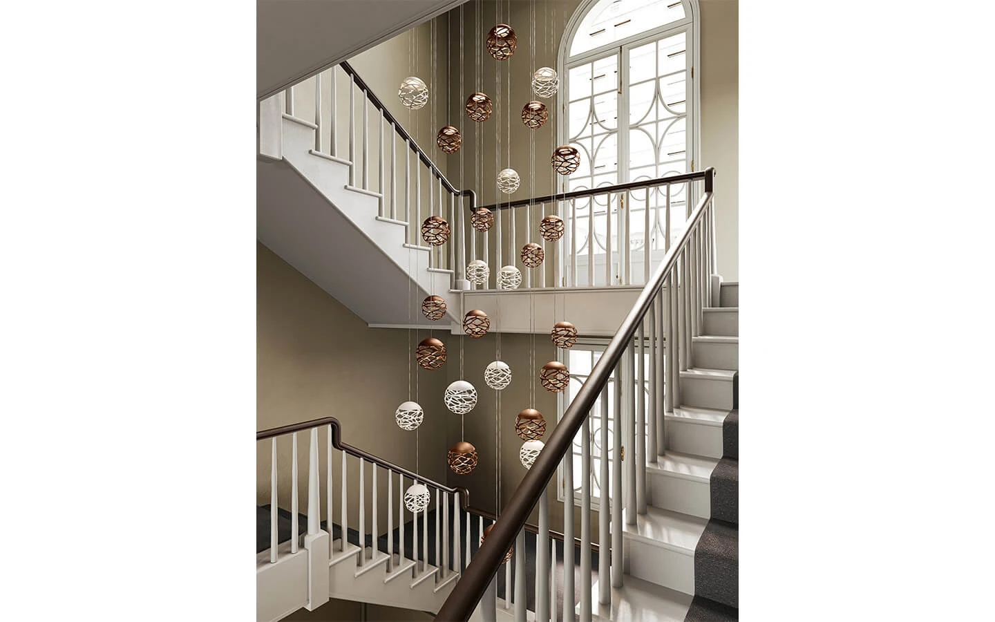 KELLY CLUSTER е модулно висящо осветително тяло от колекцията на италианския производител LODES. Розетката е изработена от метал – финиш по избор. Структурата е изработена от метал – финиш по избор. Дифузерът е изработен от ръчно духано стъкло – финиш Glossy White. Цената се определя спрямо избора на конфигурация, вид розетка, финиш на метала при розетката и структурата.