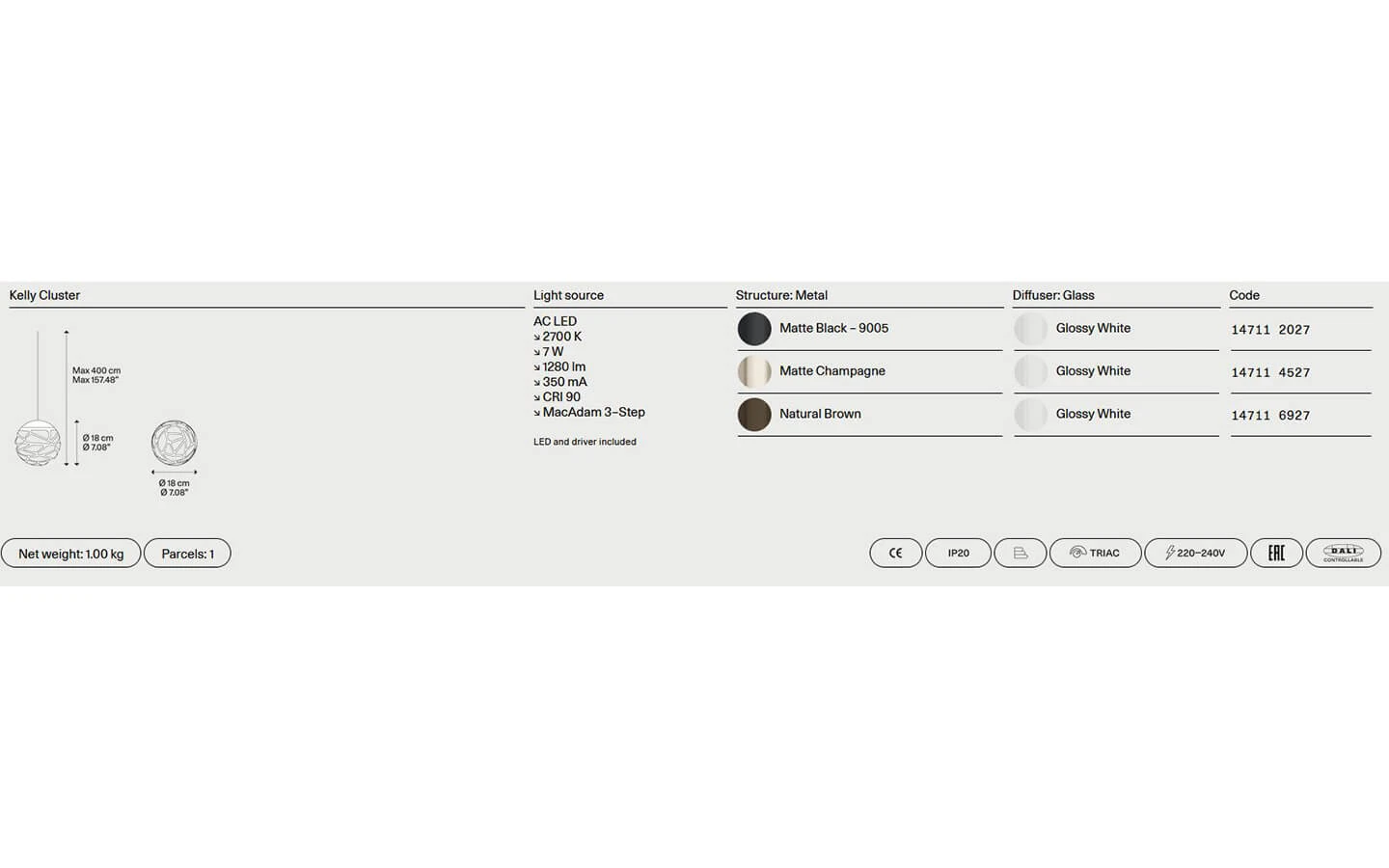 | Име на продукт | KELLY CLUSTER SUSPENSION |