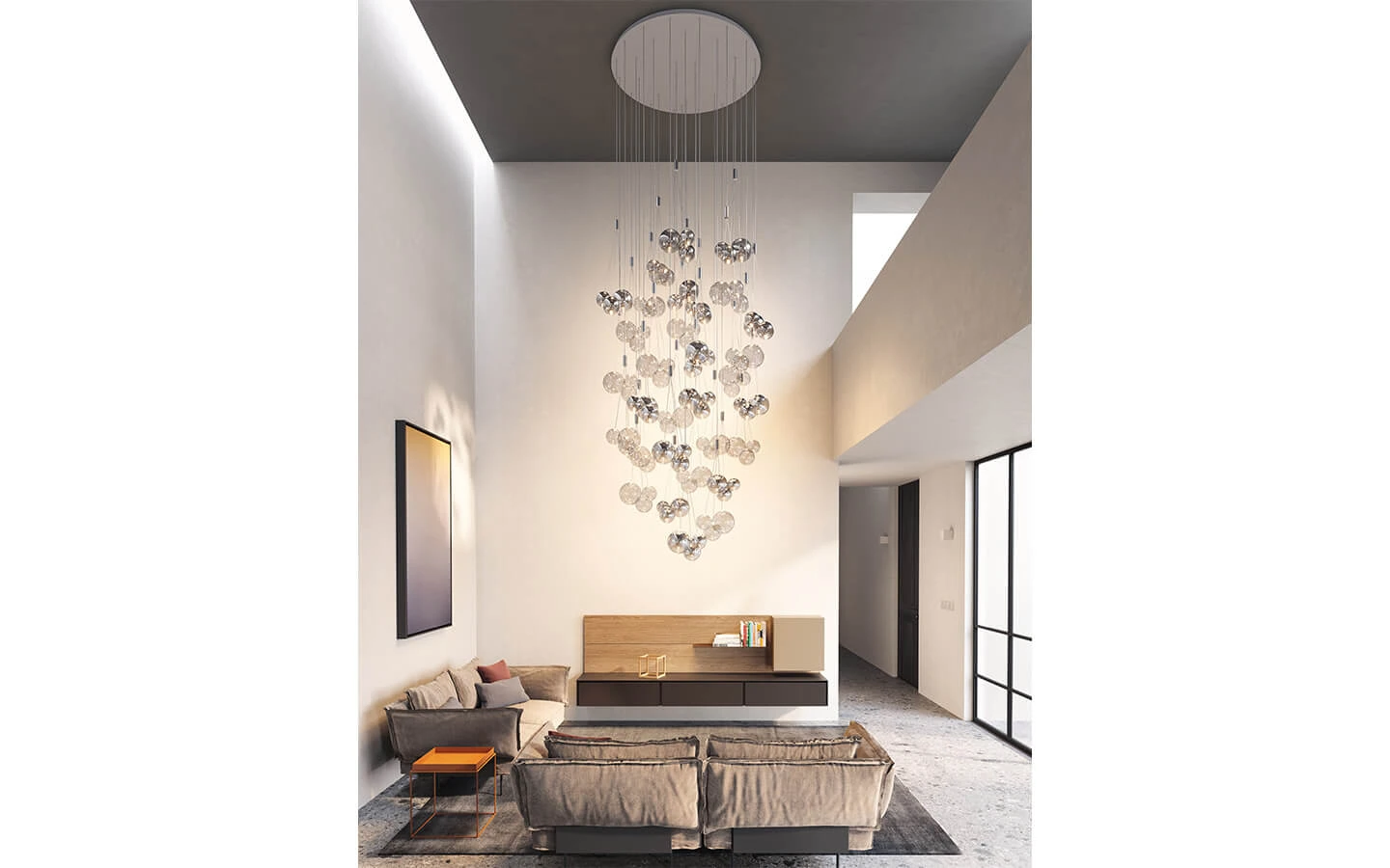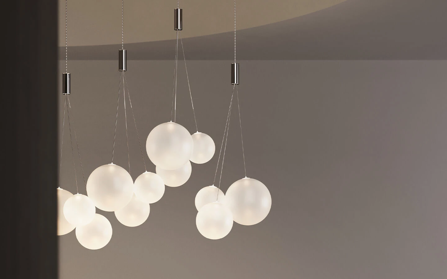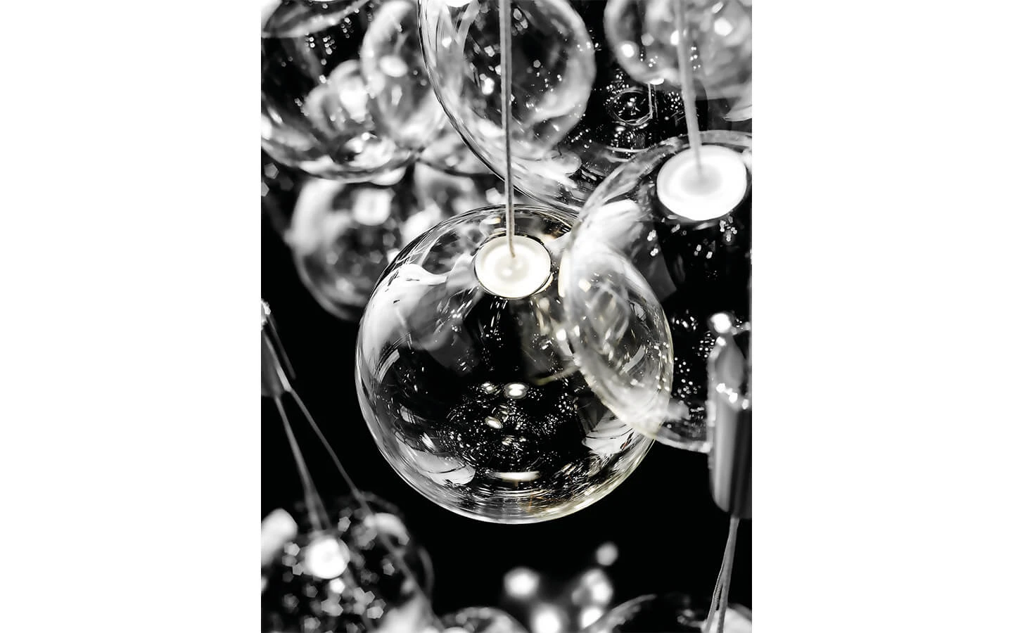 RANDOM от LODES е изразително висящо осветително тяло с артистичен и свободен характер, което превръща светлината в динамична пространствена композиция. Дизайнът се състои от множество сферични елементи от ръчно духано стъкло, окачени на различни височини от обща розетка, като всяка сфера има фини, индивидуални вариации във формата си. Това придава на осветлението органично излъчване и усещане за движение, сякаш светлината е разпръсната в пространството по естествен начин. Светлината е мека, топла и равномерно разпределена, създавайки уютна и обгръщаща атмосфера без резки сенки или отблясъци. RANDOM е подходяща както за жилищни интериори – над трапезни маси, в дневни или антре, така и за представителни обществени пространства като хотели, ресторанти и лобита, където осветлението играе ключова роля за първото впечатление. Съчетавайки ръчно изработено стъкло, съвременна LED технология и силен декоративен израз, този модел се превръща в централен визуален акцент с изразено емоционално присъствие.