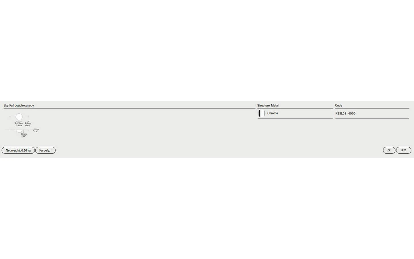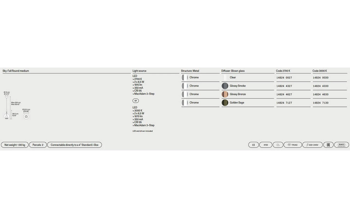 Посочената цена е за осветително тяло Sky–Fall Round medium в начална категория финиш на стъклото при дифузера.
