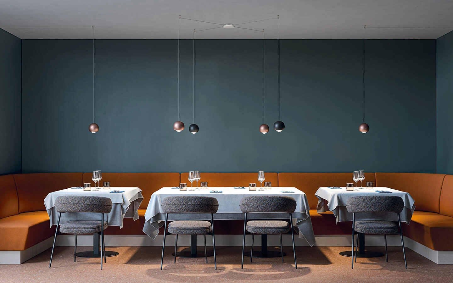 SPIDER от LODES е оригинално и силно адаптивно висящо осветително тяло, създадено като система, която позволява пълна свобода при оформянето на светлинната композиция. Дизайнът се основава на централна розетка, от която излизат няколко кабела с висящи осветителни тела, напомнящи на разперени „крака на паяк“, откъдето идва и името на модела. Тази структура позволява всяко тяло да бъде разположено индивидуално – на различна височина и в различна посока – което превръща осветлението в гъвкав архитектурен инструмент. SPIDER е изключително подходяща за пространства с високи тавани, стълбищни клетки, дневни, трапезарии, както и за модерни обществени интериори като ресторанти, барове и лобита. Светлината може да бъде насочена и персонализирана според нуждите на пространството, като едновременно осигурява функционално осветление и силно декоративно присъствие. Моделът впечатлява с индустриално-минималистична естетика, съчетана с практичност и свобода на композицията, което го прави идеален избор за интериори с индивидуален характер и смело дизайнерско решение.