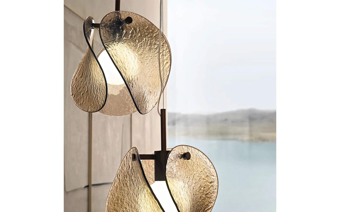 Окачената лампа TAU, проектирана от Ryosuke Fukusada за FIAM Italia, черпи вдъхновение от японското цвете „Sankayou“, известно със своите венчелистчета, които стават прозрачни при определени условия.