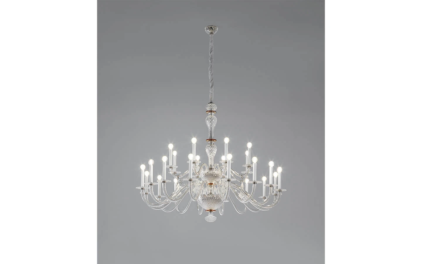 ZENO е изтънчен и изразителен полилей от колекцията Celebrities на ITALAMP – творение, което съчетава кристална лекота и артистичен замисъл. Изработен от прозрачен, ръчно гравиран кристал, ZENO впечатлява със своята хармонична форма и деликатно изваяни рамена. Цветните акценти от аметистови кристални дискове добавят нотка на изненадваща емоционалност и фин контраст към хладната прозрачност на стъклото. ZENO е идеален за елегантни дневни, трапезарии или модерни фоайета, където светлината играе роля не само на функционален елемент, но и на художествен акцент. Той излъчва спокойствие, сдържана елегантност и усещане за движение, застинало във време и форма. Този полилей не е просто осветително тяло – той е композиция от светлина и стъкло, от цвят и отражение, която разказва история за баланс, изтънченост и италиански стил.