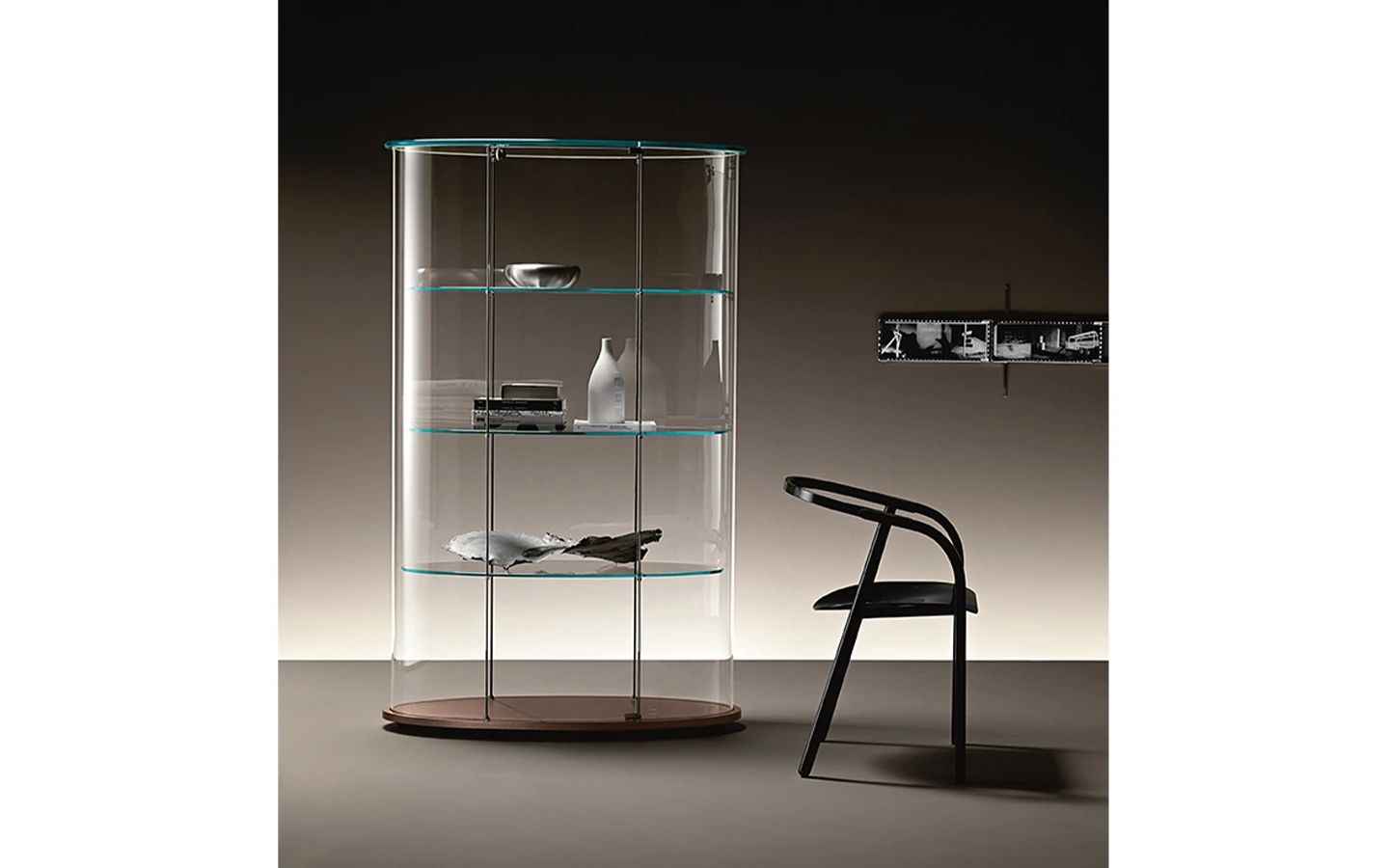 Витрината PALLADIO UNO, проектирана от Vittorio Livi за FIAM Italia, е изискана витрина, която съчетава елегантен дизайн и функционалност. Включва механизъм за заключване, осигуряващ защита на изложените предмети. Уникалният сферичен стъклен профил на PALLADIO UNO я превръща в акцентно изделие за съвременния интериор, като предоставя стилен начин за излагане на декоративни предмети и ценности.
