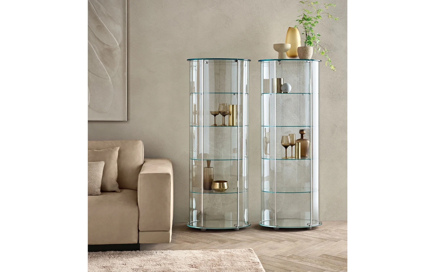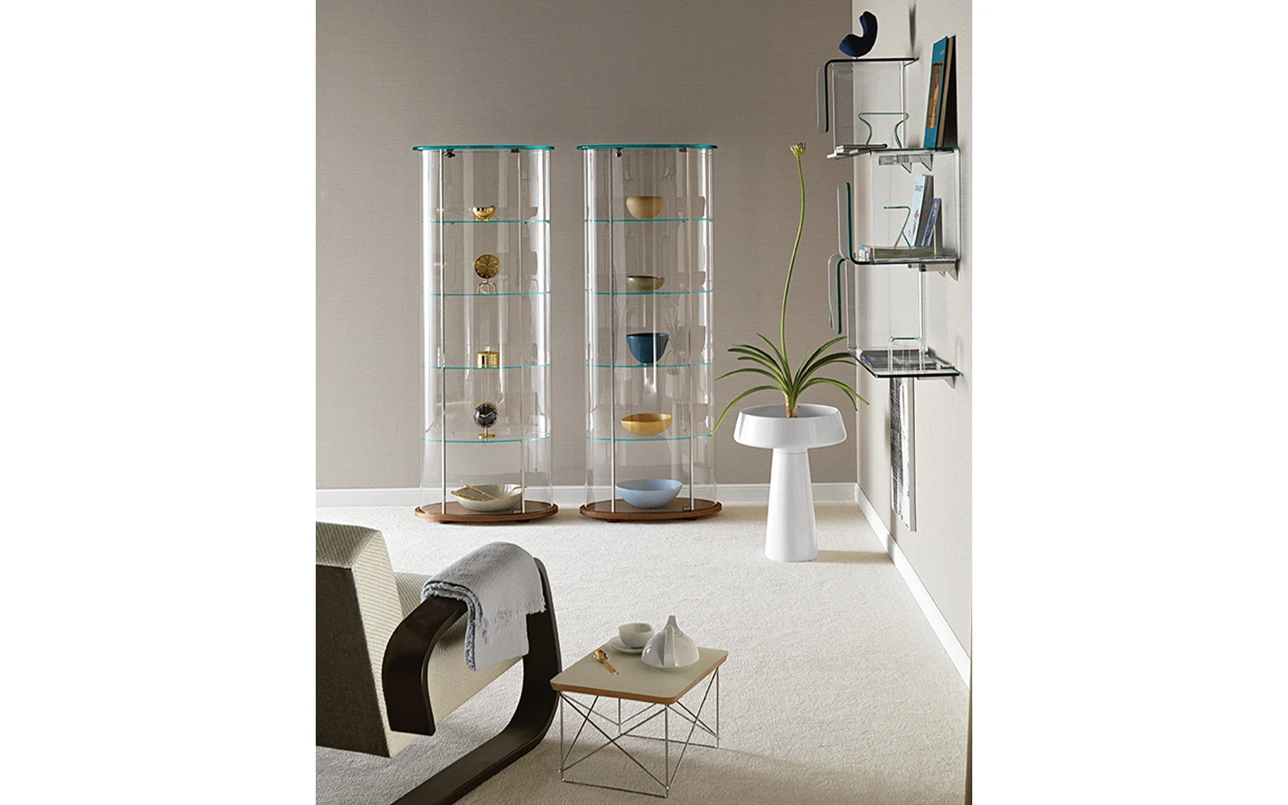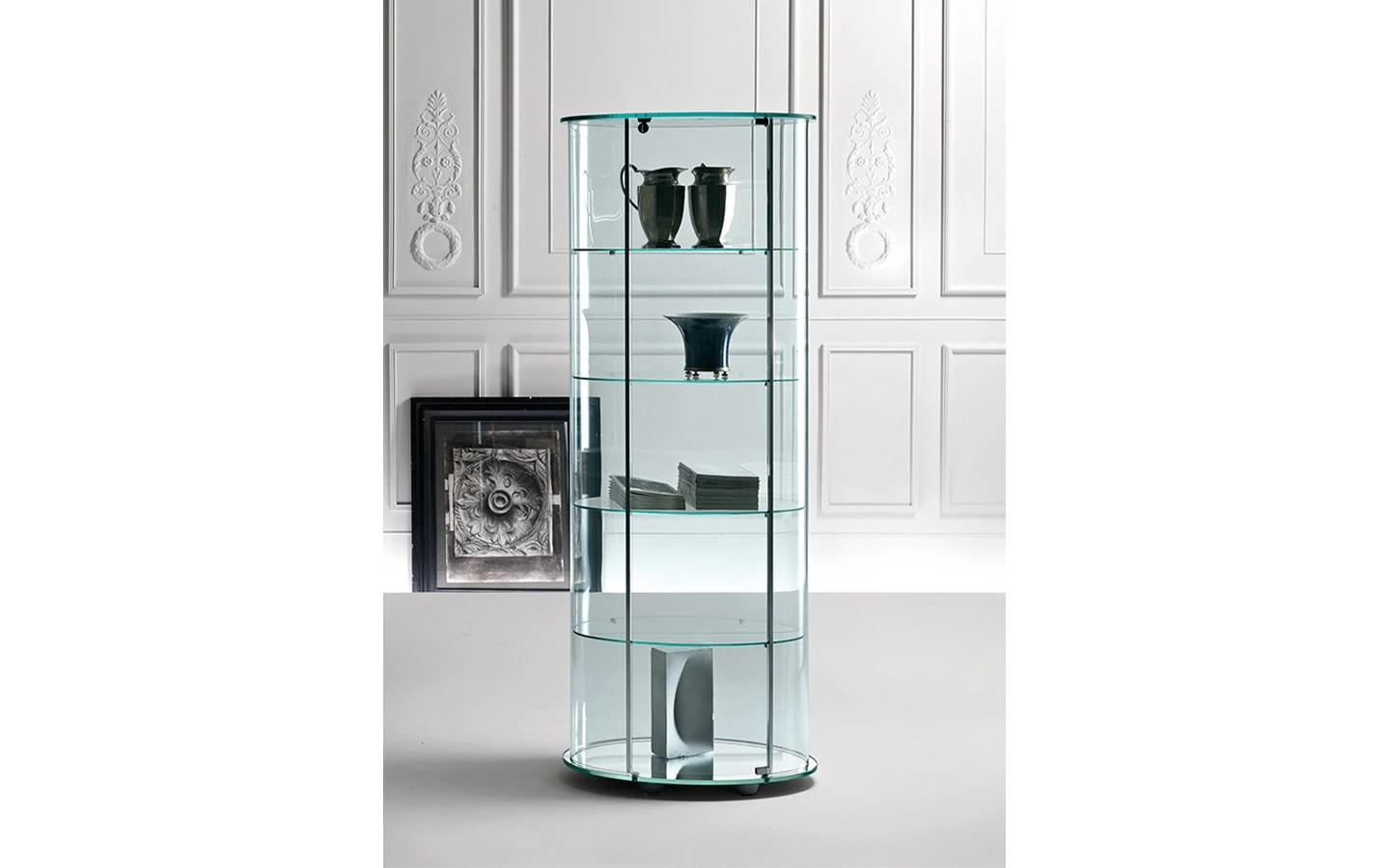 Витрината PALLADIO, проектирана от Vittorio Livi за FIAM Italia, е изискана витрина, съчетаваща елегантен дизайн и функционалност. Предлага се възможност за добавяне на осветление под горния панел, което подчертава изложените предмети и създава приятна атмосфера. Витрината PALLADIO е идеална за излагане на ценни предмети, като същевременно допринася за елегантността на интериора.