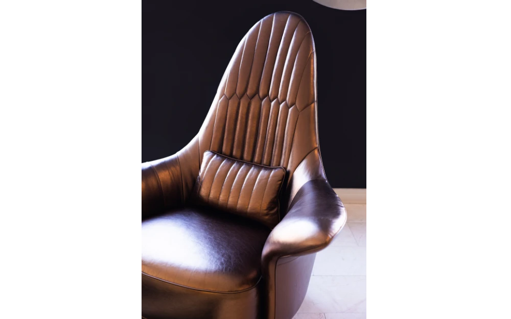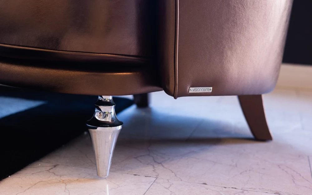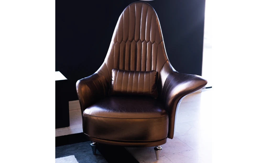 Кресло WUNJO от VISIONNAIRE е с изключителен и запомнящ се дизайн. Креслото е тапицирано в метализирана естествена кожа, в бронзов цвят. Предните крака са метални, във финиш хром. Задните крака са тапицирани в кожа.