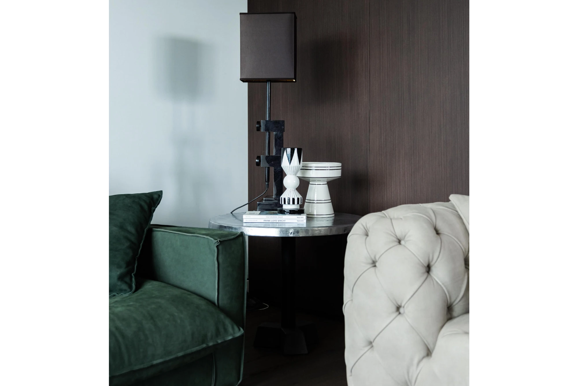 В допълнение към меката мебел, страничната масичка Brass 43, отново от колекцията на Паола Навоне (Paola Navone) за италианската марка Gervasoni, е изцяло от метал. Прекрасен баланс към мекотата и излъчването на кожата и буклето на диваните и креслото.