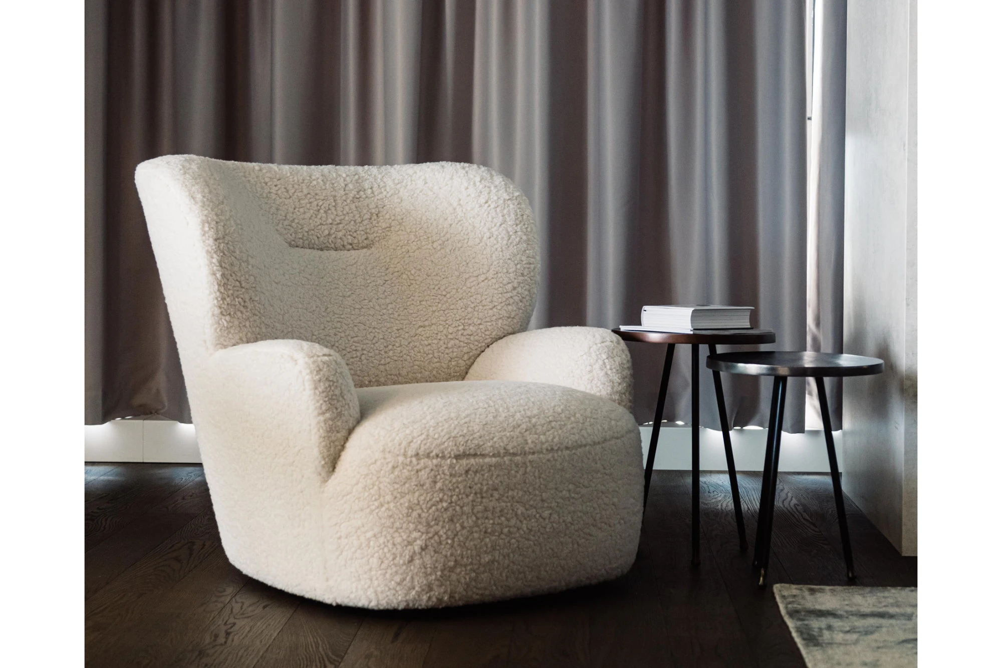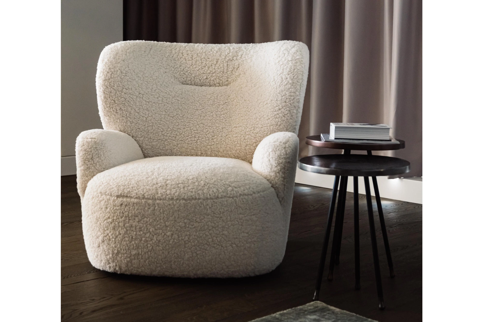 - И фотьойлът Loll от италианската марка Gervasoni, създаден от самата Паола Навоне (Paola Navone). Въртящ се, удобен, уютен и закачлив, облечен в задължителното бяло вълнено букле – must-a в меката мебел.