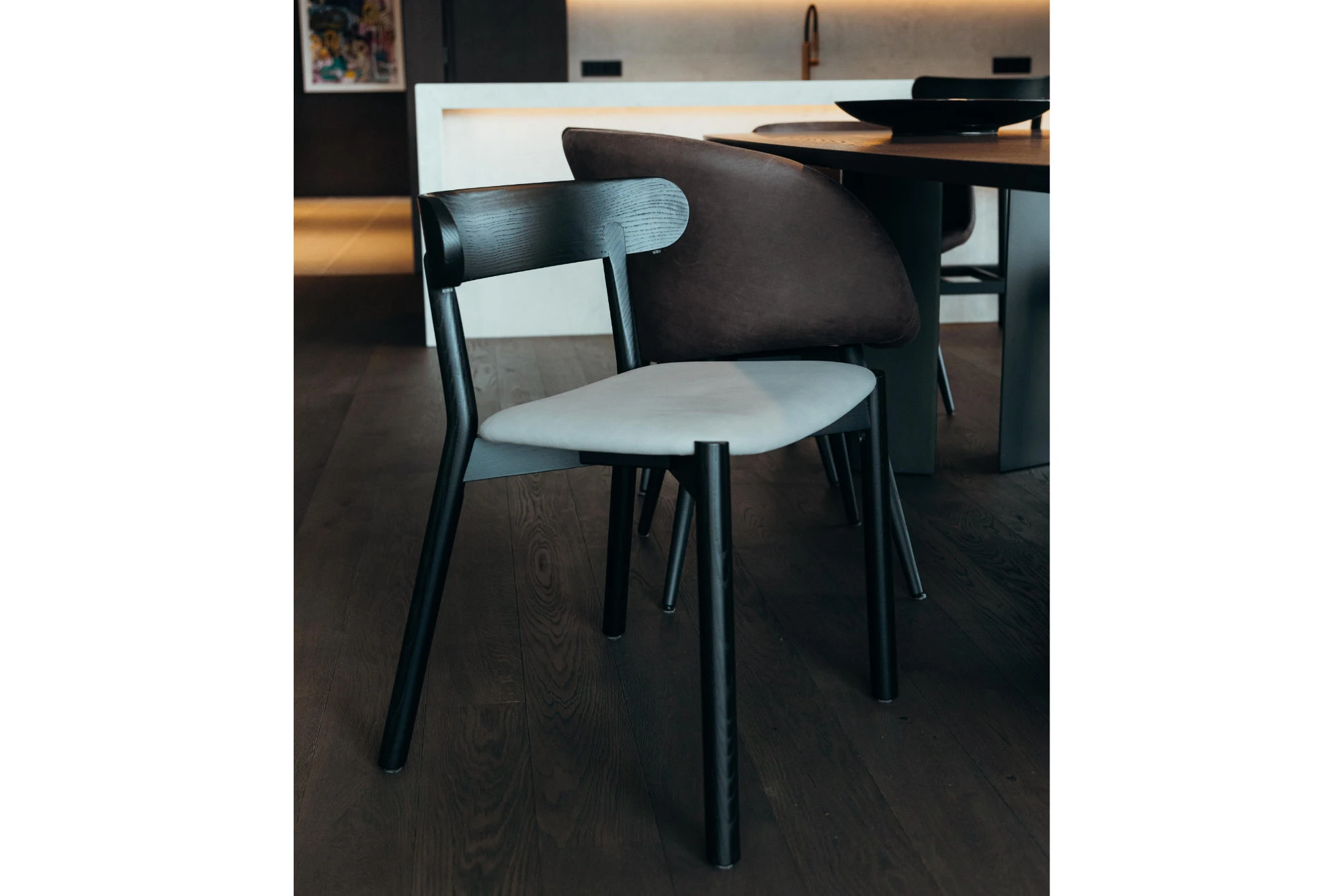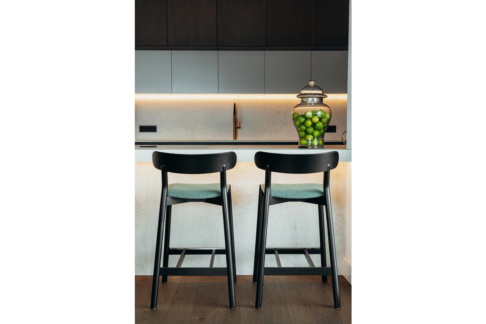 Два от столовете в трапезарната композиция и бар столовете – отново от италианския производител Midj, модел Montera, са съвременното намигване към прословутия виенски стол Тонет (Thonet).