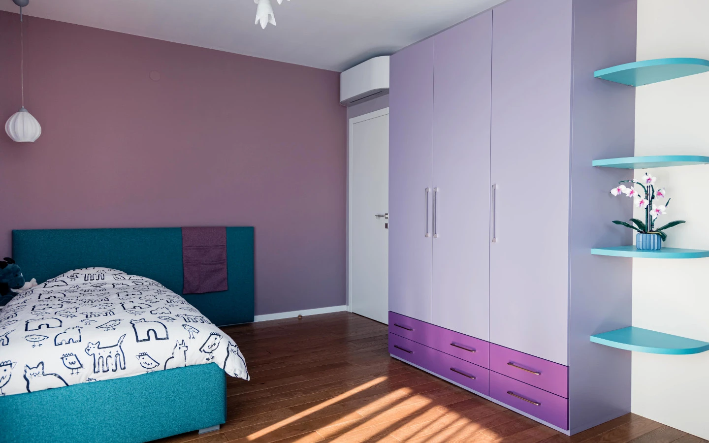 За детските стаи избрахме интензивни, нетрадиционни и весели съчетания от модулните серии за детско обзавеждане на Giessegi в съчетание с функционалните легла от колекциите на BSide Letti – Italia.