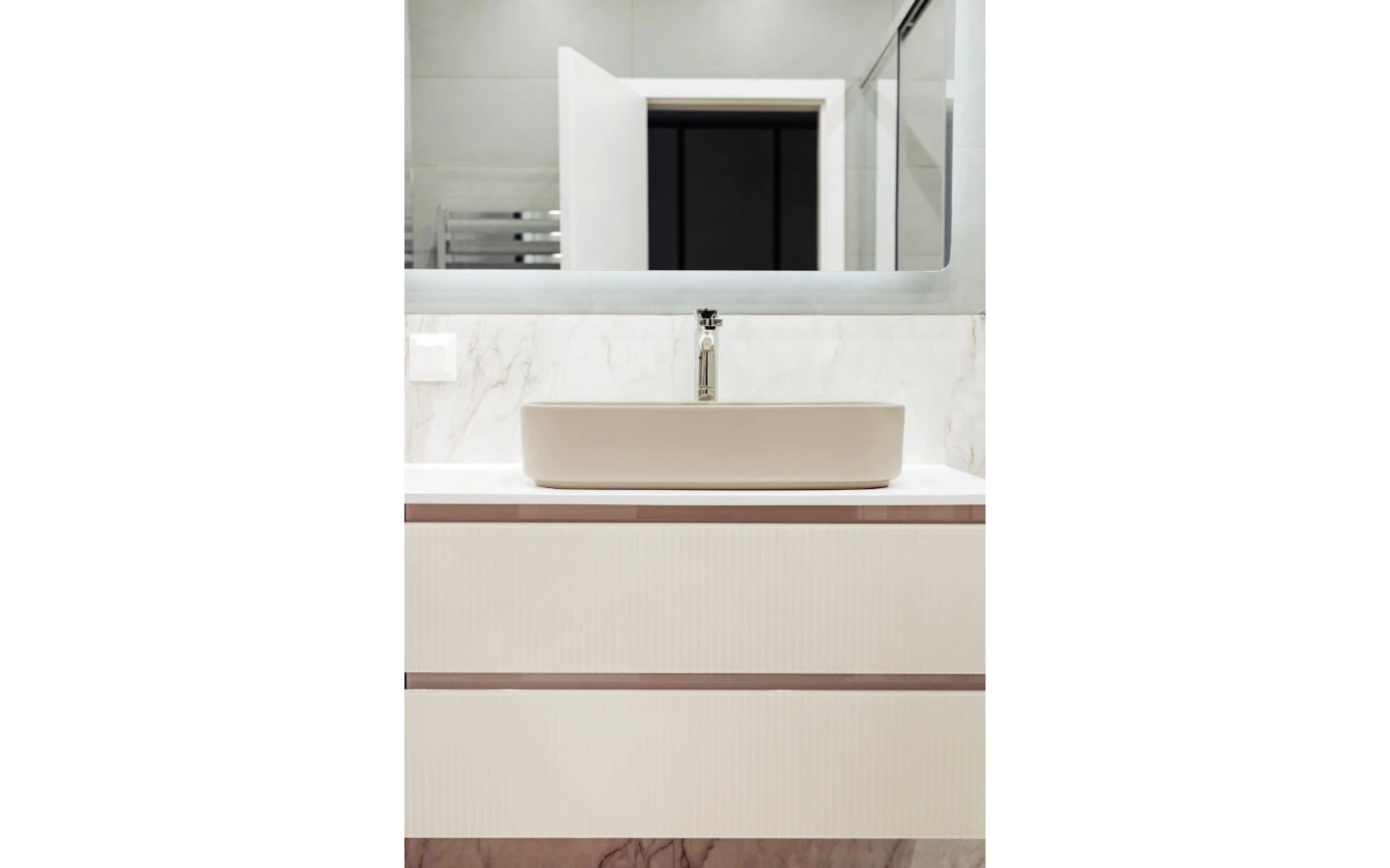 Уникалността на производството на мебелите за баня от колекциите на Artelinea е в изцяло облечените шкафове в специално обработени стъклени повърхности. Елегантен релеф на стъклото в красиви тонове, графично подчертани с вградени дръжки, отново в стъкло.